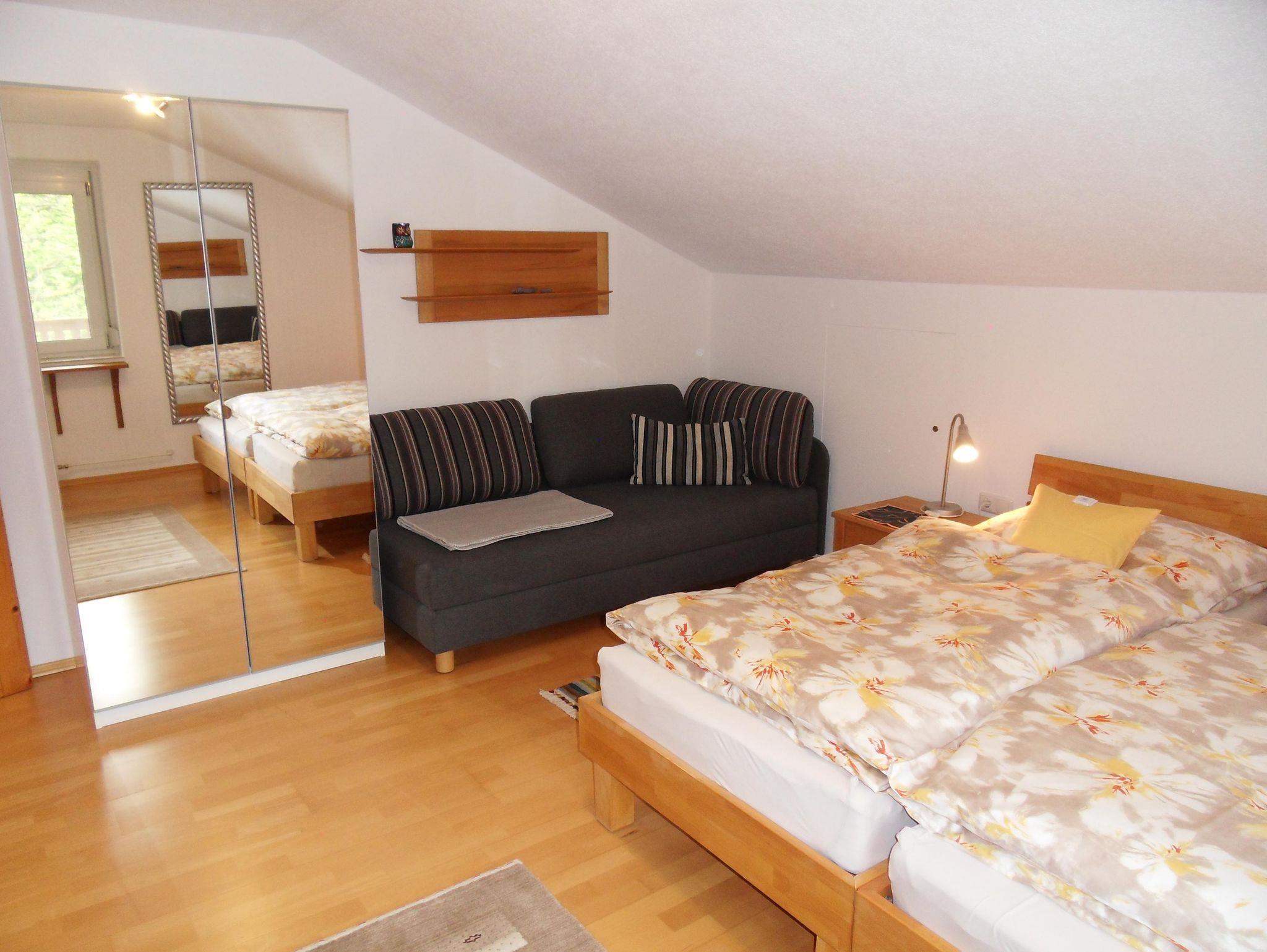 Wohnung für 1 bis 3 Personen (ca. 70 m2 inkl. 2 Balkone) • 2024 neu; hochwertig eingerichtet und ausgestattet • Stellplatz für einen PkW • separater Hauseingang über Westtreppe • Flur mit Garderobe • modernes Badezimmer mit Dusche (100x100), Waschbecken, WC • großes Schlafzimmer variabel mit Doppelbett oder zwei Einzelbetten (90 x 200), plus extra Sofa (vollwertiges Bett), reichlich Schrankplatz • große Küche mit Herd, Backofen, Mikrowelle, Kaffeemaschine, Geschirrspüler, Kühlschrank mit Eisfach, Essecke mit Eckbank und Stühlen • Wohnzimmer mit Sofa, Sesseln, Tischchen und Flachbildfernseher /Sat TV • großer überdachter Südbalkon mit Terrassenmöbeln, Wäscheständer; zusätzlich großer Westbalkon mit Tisch und Stühlen • WLAN • allergikergeeignet (kein Teppichboden, keine Bettfedern)