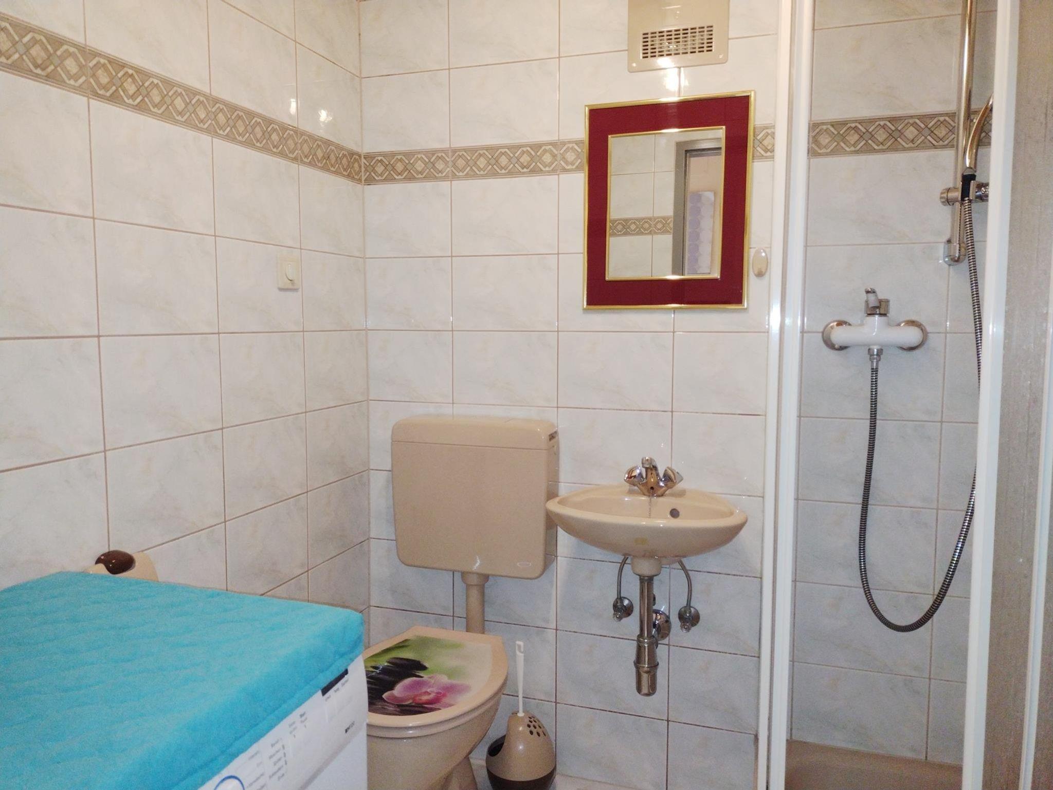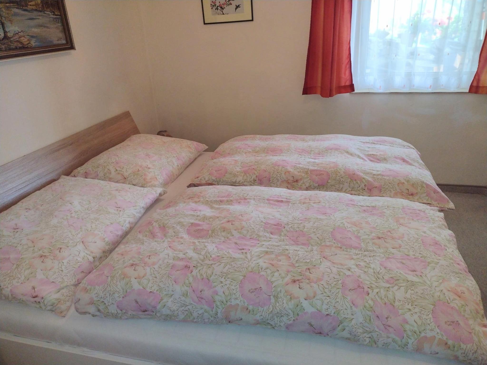1 ruhiges, ostseitiges DZ ohne Balkon, mit Waschbecken und kleinem Schrankraum; 1 südseitiges DZ ohne Balkon, mit Waschbecken und Boxspringbett; 1 Dusche/WC mit Gästewaschbecken und 1Waschmaschine, 1 vollausgestatte Kochnische mit Küchenzeile, 1 Wohnzimmer mit Essbereich für 5 Personen, gemütliches Ecksofa und 2 Sesseln,Wohnzimmermöbel in Vollholzausstattung, 1 Vorzimmer, SAT/TV und gratis WLAN