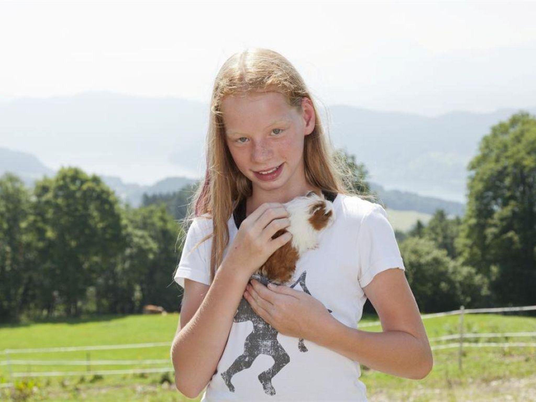 Auf die Kinder warten schon unsere Tiere die sich gerne umsorgen und verwöhnen lassen (Hunde, Katzen, Kühe, Kälber, Ziege, Meerschweinchen,Hühner).