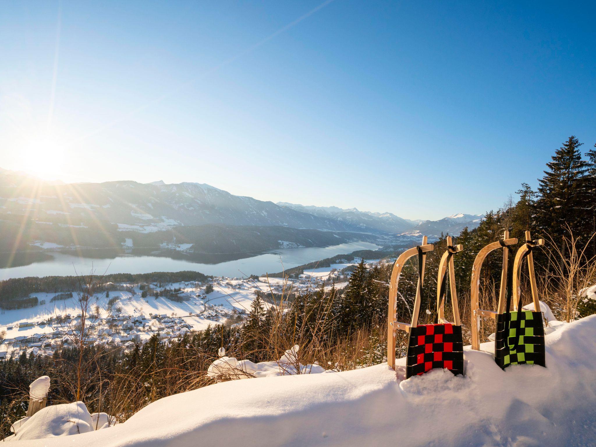 Von der Terrasse aus, welche sich im Aussenbereich befindet und nicht überdacht ist, können Sie bei schönem Wetter die Sonne und den traumhaften Blick auf die umliegenden Berge genießen. Teilweise mit Blick auf den Millstätter See.
