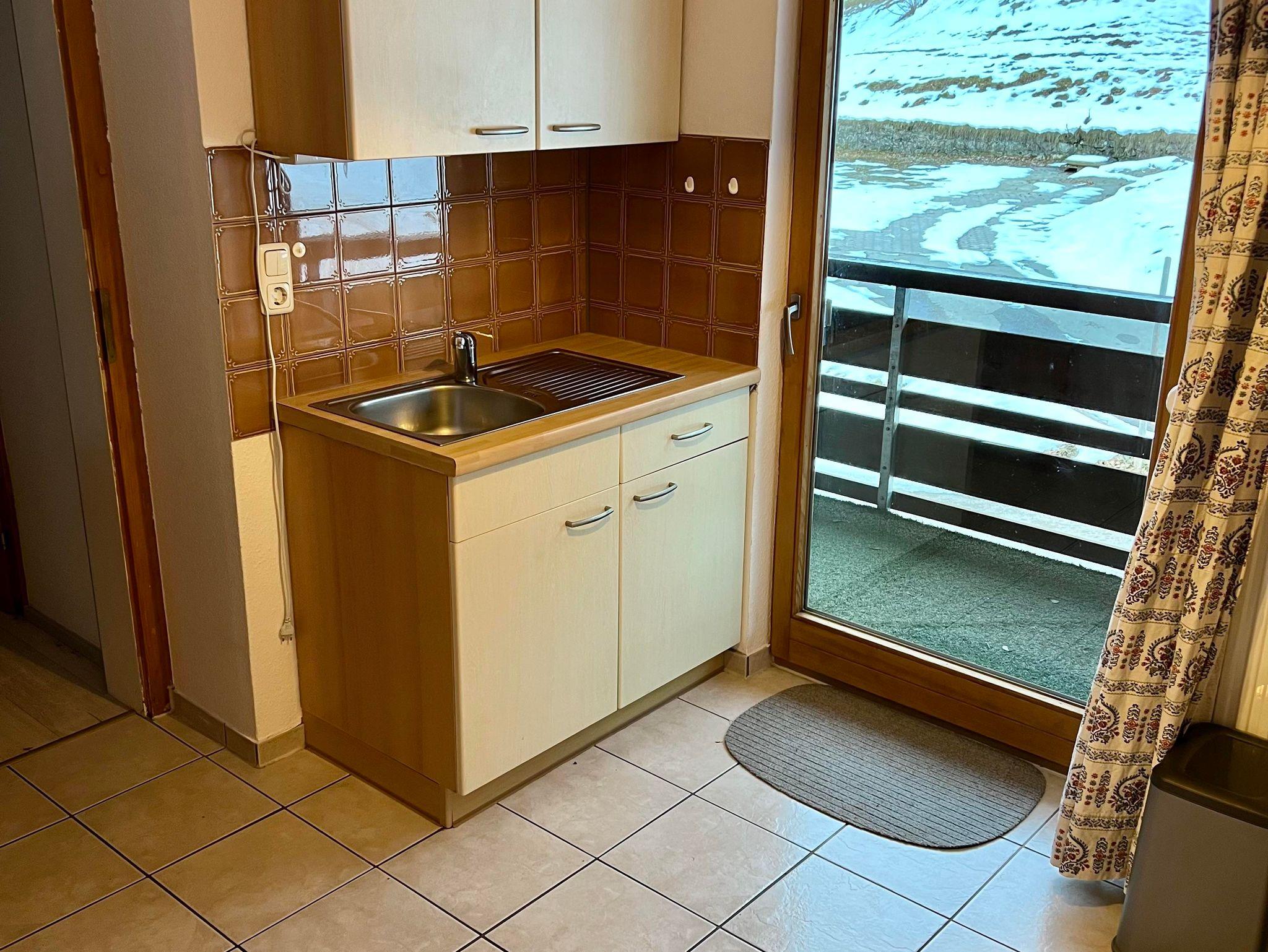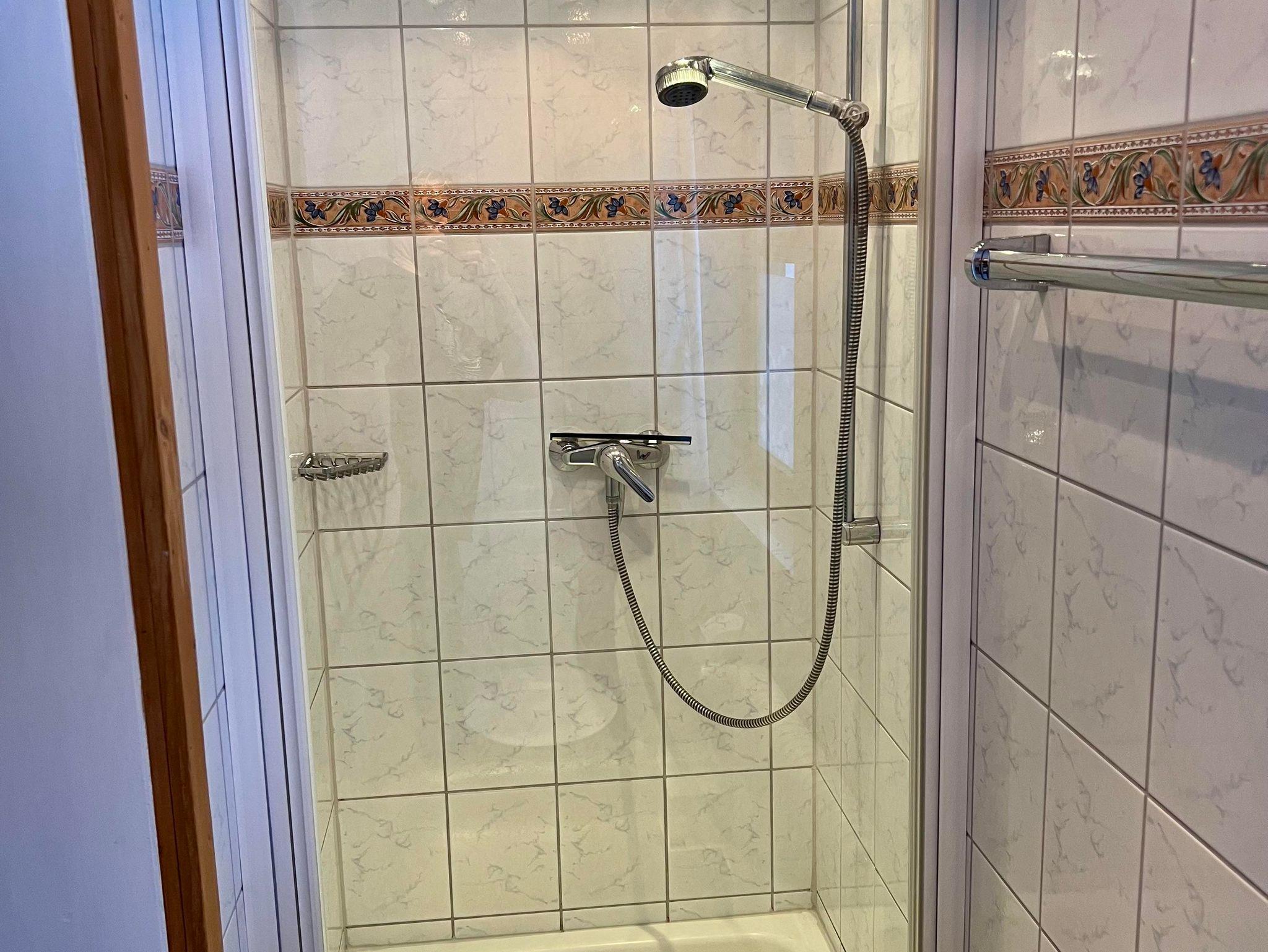 Die Wohnung ist im ersten Stock mit Balkon nach Osten, 2 Schlafräume, ein Schlafzimmer mit Doppelbett und ein Schlafzimmer mit 2 Einzelbetten beide mit Waschgelegenheiten, Wohn-Schlafraum, 1 ausziehbares Schlafsofa im Wohnzimmer, TV, Küche (u. a. mit Toaster, Kaffee-Maschine,...), Dusche, WC, Balkon. Babybett zustellbar, Haarfön.