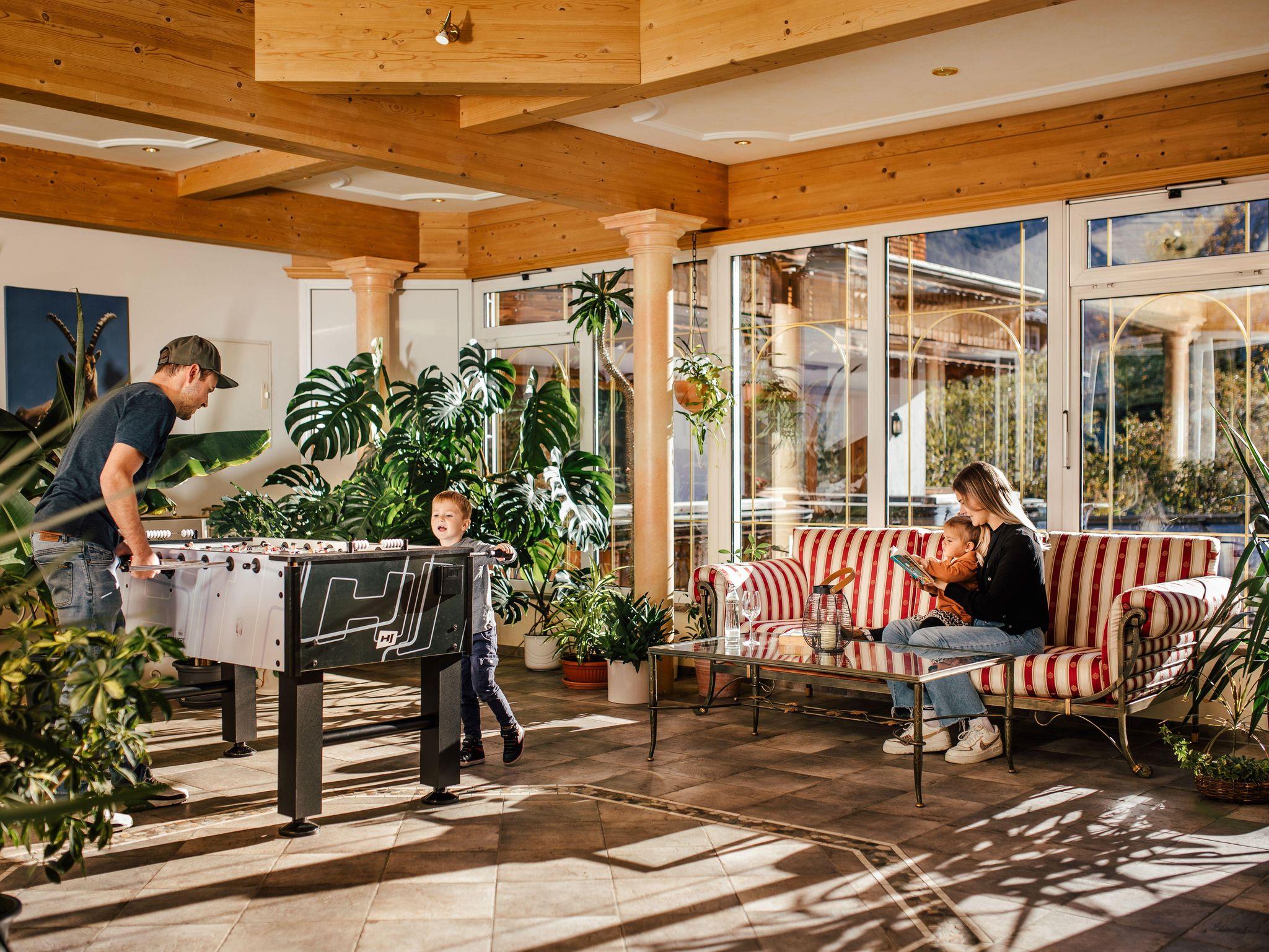 Genießen Sie entspannende Stunden in unserer Sauna, dem Dampfbad oder dem Whirlpool, während die Kinder sich im Fitnessraum oder im liebevoll gestalteten Spielbereich vergnügen können. Für sportliche Gäste bieten wir auch eine breite Palette an Fitnessgeräten und einen Ruhe- und Relaxingraum.
