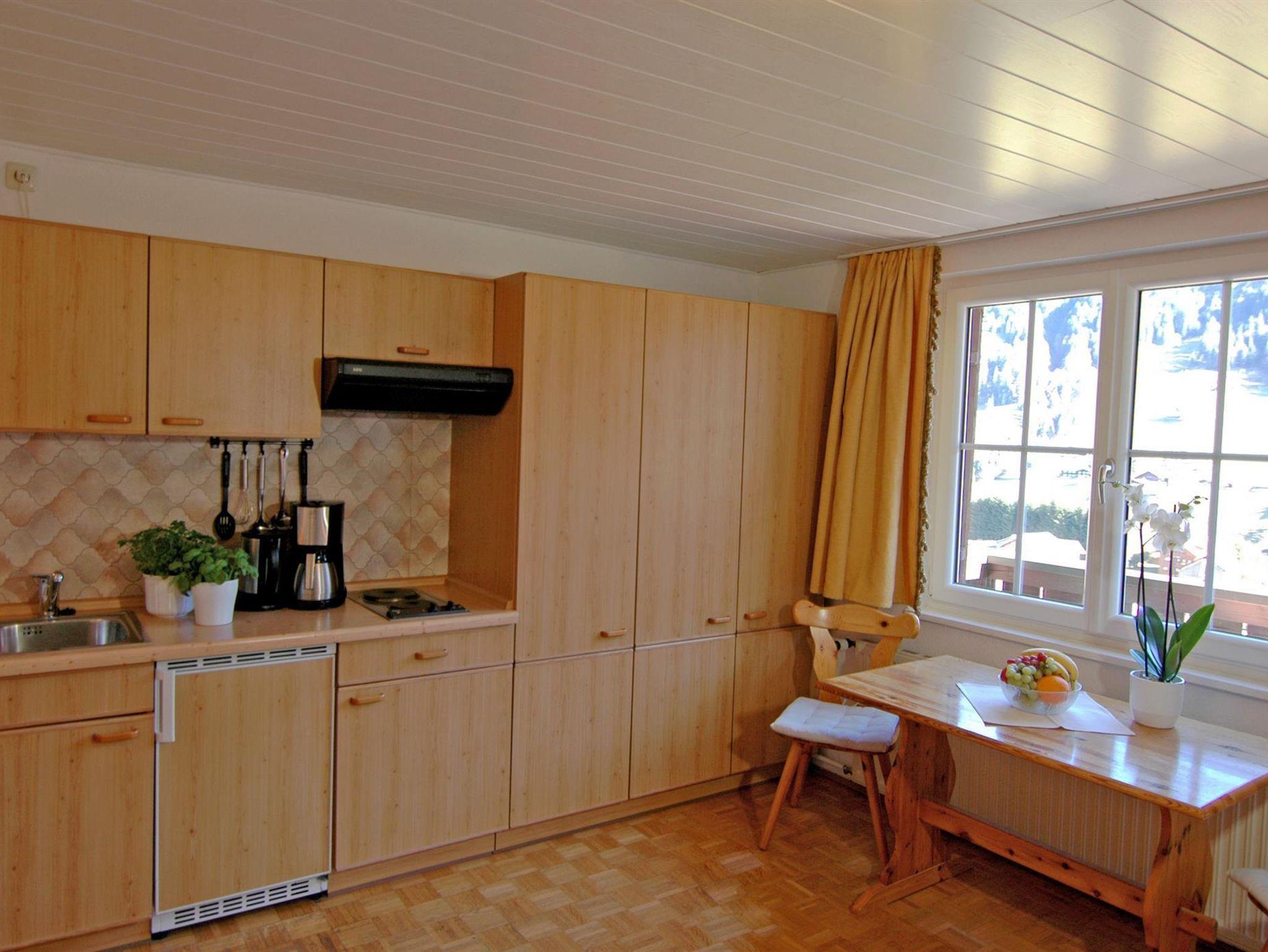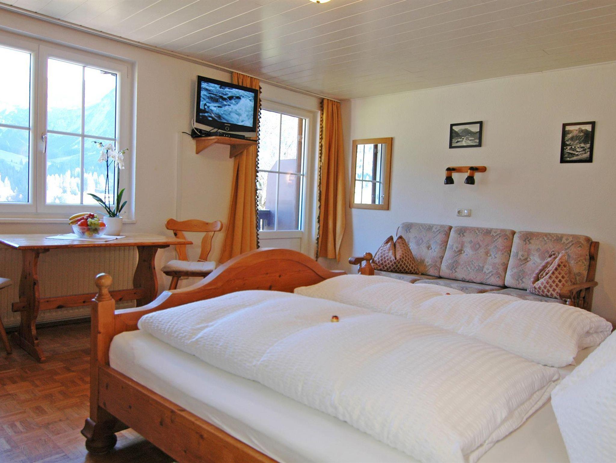 Ein gemütlicher Wohn-Schlafraum mit großem Doppelbett, Dusche, WC und TV sowie ein Balkon zur Bergseite mit traumhafter Gebirgsaussicht warten auf Sie. Mitzubringen sind Hand-, Bade- und Geschirrtücher.