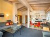 Schlafzimmer mit Doppelbett, Wohnzimmer offenem Dachstuhl und großer Wohnlandschaft (dreifach ausziehbar), Rundum-Bergpanorama-Blick, integr. Küche mit 4-Platten-Herd, Backofen, Spülmaschine, Eßecke, digitalisierter Flachbildschirm, Telefon, Radio, Internetzugang, Bad mit Badewanne und Dusche/WC, Fön, separates WC, großer Ost-Süd-West-Balkon 10qm