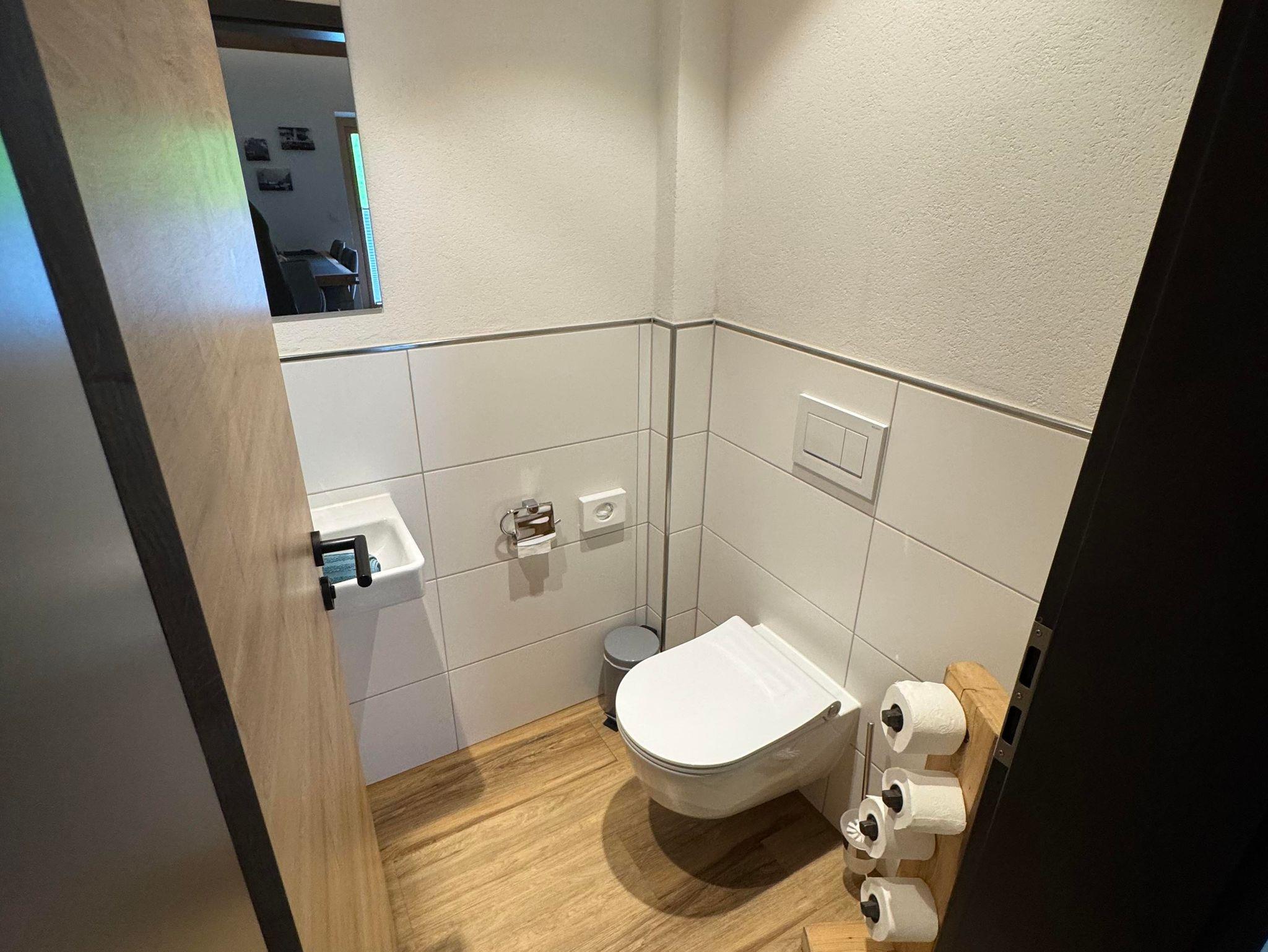 Im Sommer 2018 wurde der obere Stock unsere Hauses entkernt und Dach, sowie die Wände komplett ökologisch mit Holzwolle gedämmt. Der originale Holz-Dachstuhl wurde aufwendig aufgearbeitet und in liebevoller Kleinarbeit in Szene gesetzt. Dies wird durch die indirekte, dimmbare LED - Beleuchtung noch unterstützt. Für ein wohliges und gemütliches Raumgefühl, sogar an kältesten Wintertagen, sorgt die im ganzen Stockwerk verlegte Fußbodenheizung.