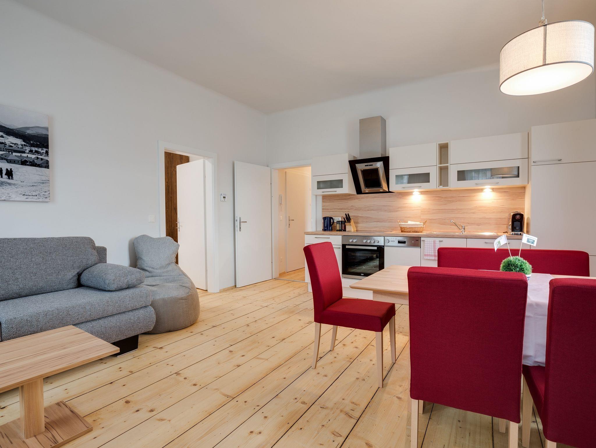 Das historische, im Ortskern von Mitterbach gelegene Gästehaus beherbergt seit 2017 sechs modern-elegant ausgestattete Nichtraucherappartements zu je 45 m² bis 60 m². Ob Single, Pärchen oder Familie – hier fühlt sich jeder wie zu Hause. Die Ferienwohnungen sind mit sämtlichen Annehmlichkeiten ausgestattet und verfügen über Schlafzimmer, Vorraum, Badezimmer, WC und einen gemütlichen Wohnraum mit Küchenzeile. Wäsche ist selbstverständlich vorhanden, Vierbeiner sind beim Wilde Wunder Card-Gastgeber auf Anfrage – gegen eine Reinigungspauschale – willkommen.
