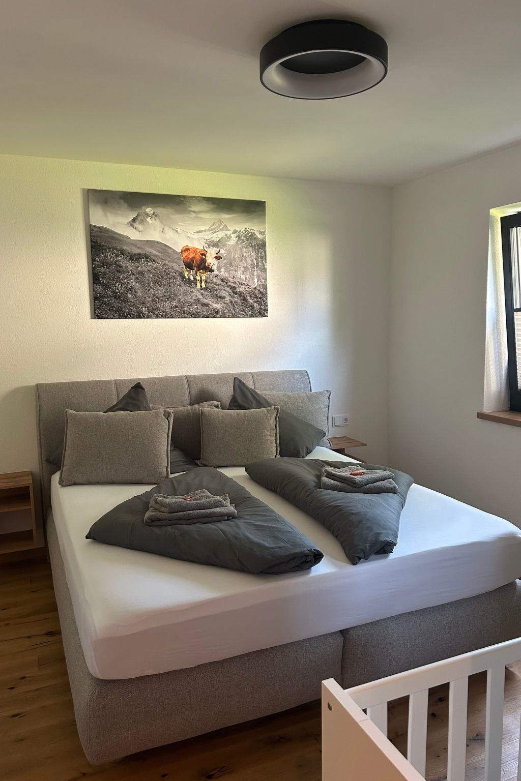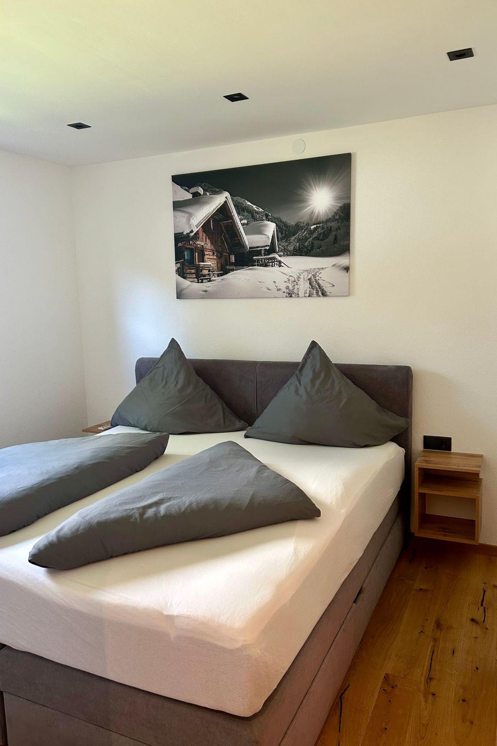 Enjoy the comfort and cosiness of our fully equipped holiday flat: modern entertainment with satellite TV and streaming options as well as free Wi-Fi. High-quality equipped kitchen with fridge, oven, coffee machine and all the necessary utensils for enjoyable cooking. You will also find an inviting living area with a cosy atmosphere that can accommodate up to 6 people. You will also find 2 bedrooms with comfortable beds and plenty of storage space, 1 bathroom with shower and towels and an extra WC. You can store your skis and snowboards safely and comfortably in a heated ski storage room.