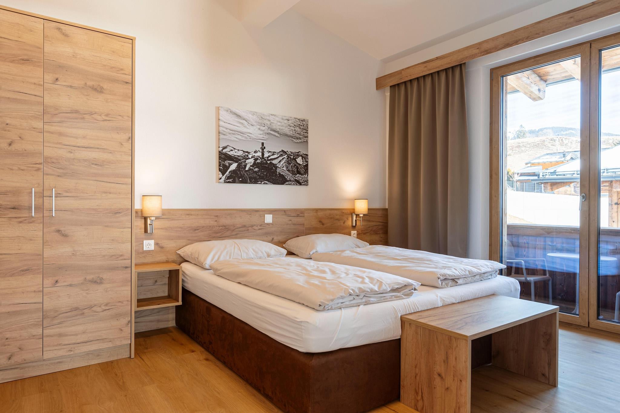 Denne stilfulde penthouse, kun 500 meter fra KitzSki-pisterne, tilbyder en betagende udsigt over Hohe Tauern mod syd og Kitzbühel-alperne mod nord. Lejligheden er ideelt beliggende nær Mittersill, et populært udgangspunkt for skiløb, vandreture og andre udendørs aktiviteter i ferieregionen Hohe Tauern National Park. På 186 m² kan penthouset med 5 rummelige soveværelser, hver med en dobbeltseng, komfortabelt rumme op til 10 personer. Der er 5 badeværelser, hver med bruser og toilet, samt et ekstra separat toilet. Den møblerede altan inviterer til afslapning med udsigt over det smukke bjerglandskab. I det fuldt udstyrede køkken finder du alt hvad du behøver for at lave mad og spise sammen: komfur, ovn, mikroovn, køleskab, opvaskemaskine, brødrister, elkedel og kaffemaskine samt bestik og service. I resortets eksklusive wellness-område med indendørs pool, afslapningsrum og to saunaer (finske og biologiske) kan gæsterne slappe af og undslippe hverdagens stress. Denne penthouse er det perfekte tilflugtssted for familier eller grupper, der ønsker at nyde både udendørs eventyr og afslapning.
