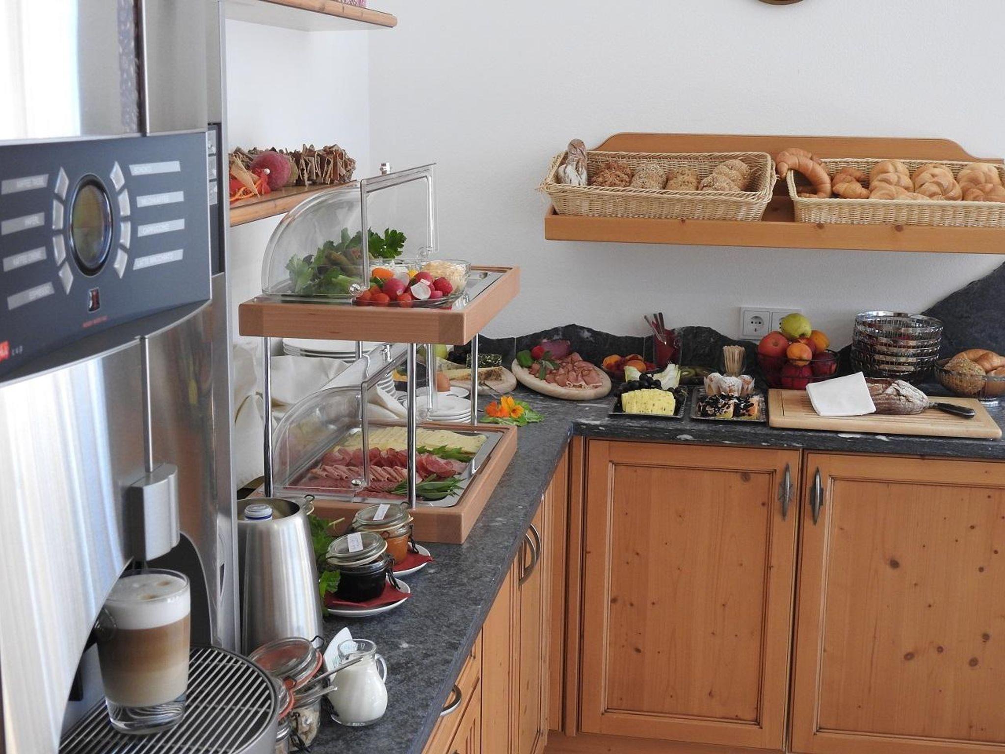 •2 Doppelzimmer - 1 Zusatzbett möglich •komplett eingerichtete Wohnküche •Badezimmer mit Infrarotkabine, Erlebnisdusche - Raindance Tellerbrause und Handbrause, Handtuchtrockner, Haarfön •WC separat •Südbalkon •Vorraum, Garderobe •Sat-TV, Internetanschluss, Zimmersafe •großzügiges Frühstücksbuffet oder Brötchenservice auf Wunsch •inkl. 1 x wöchentl. Einladung zu Kaffee & Kuchen und 1 x Nachmittagsjause