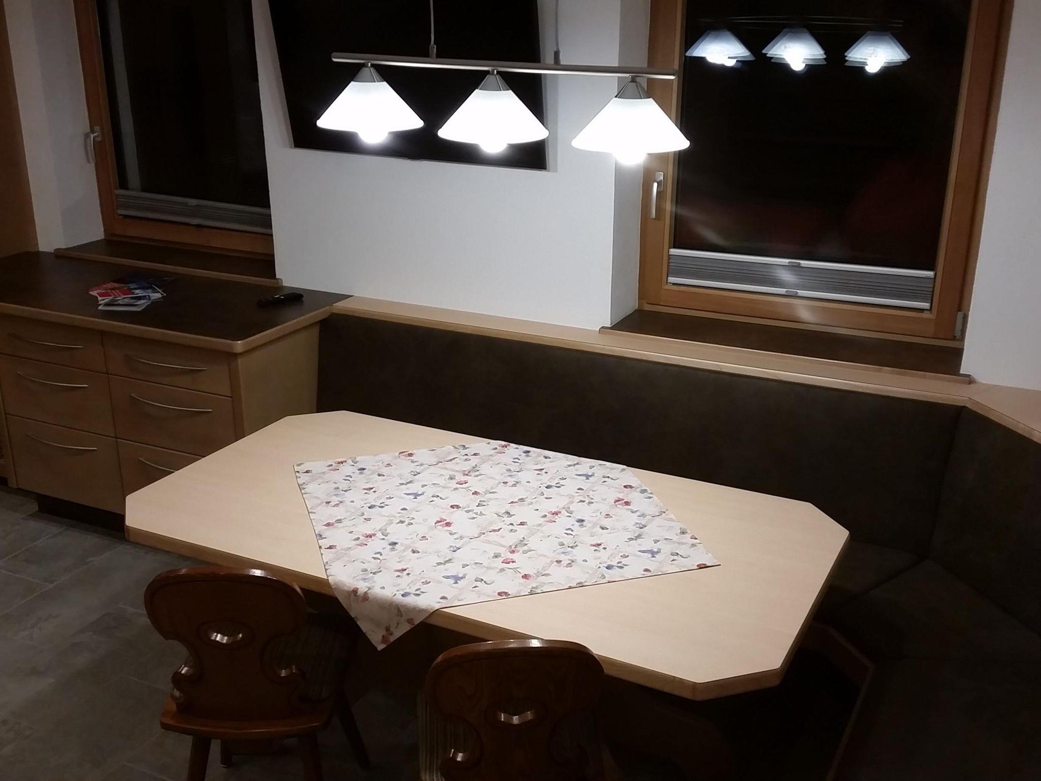 und Backrohr, Wasserkocher, Kaffeemaschine, Toaster, Eierkocher, Sat-TV. Eine gemütliche Ausziehcouch kann auch