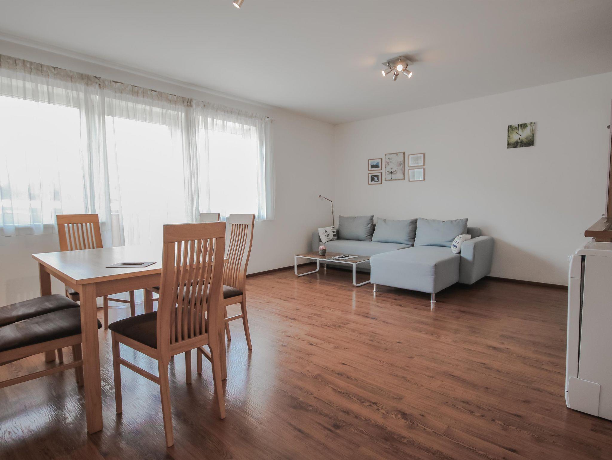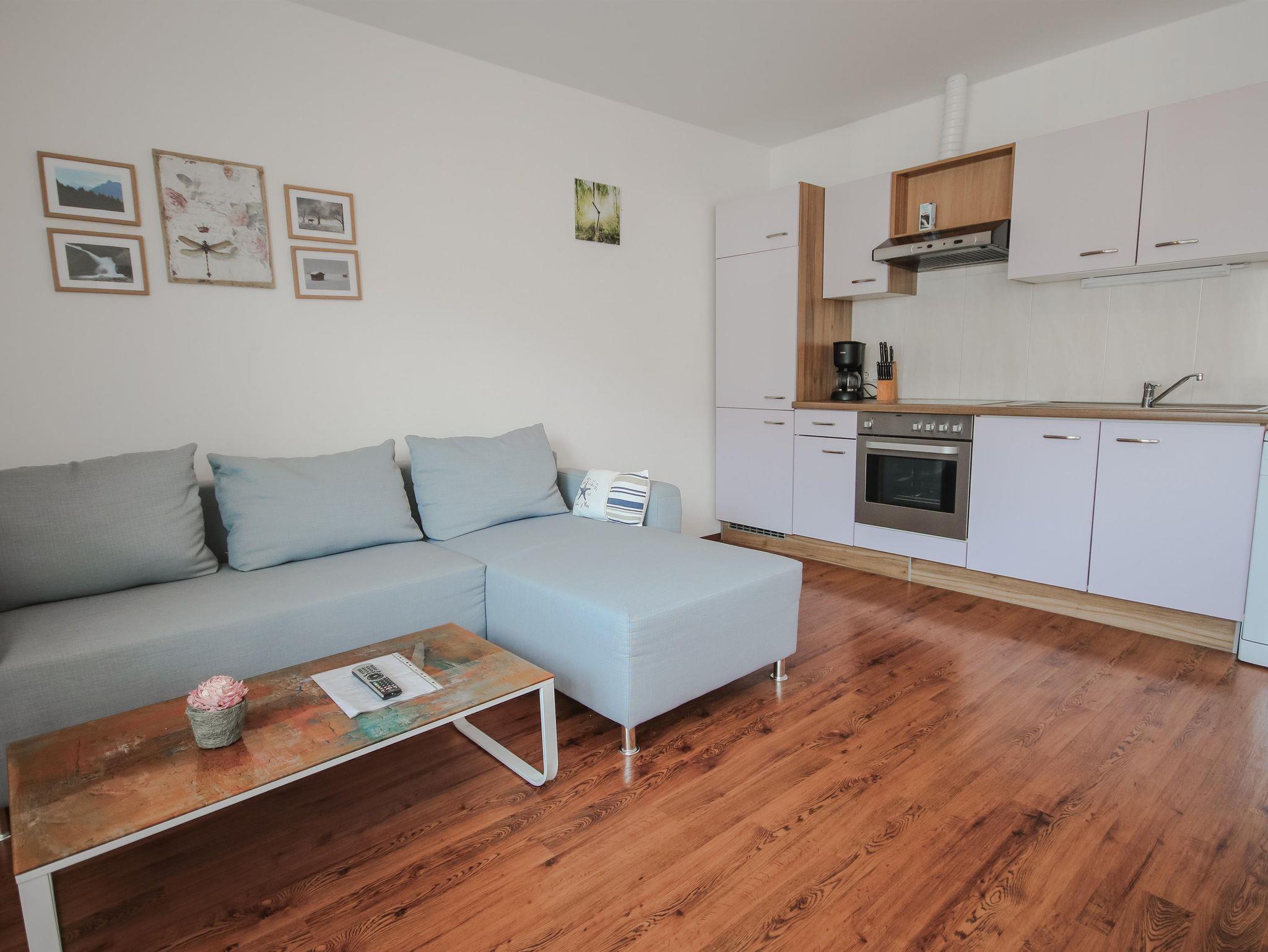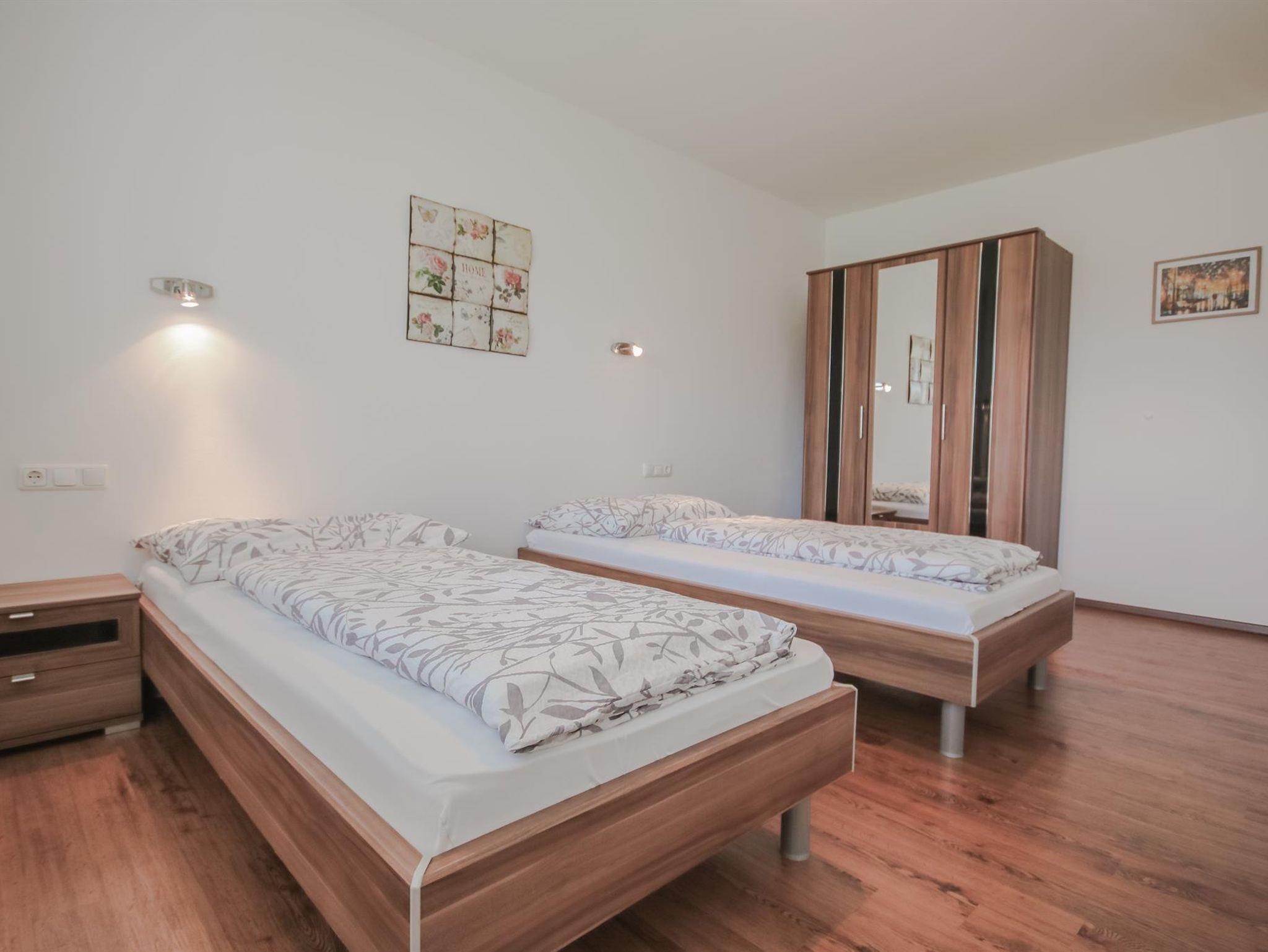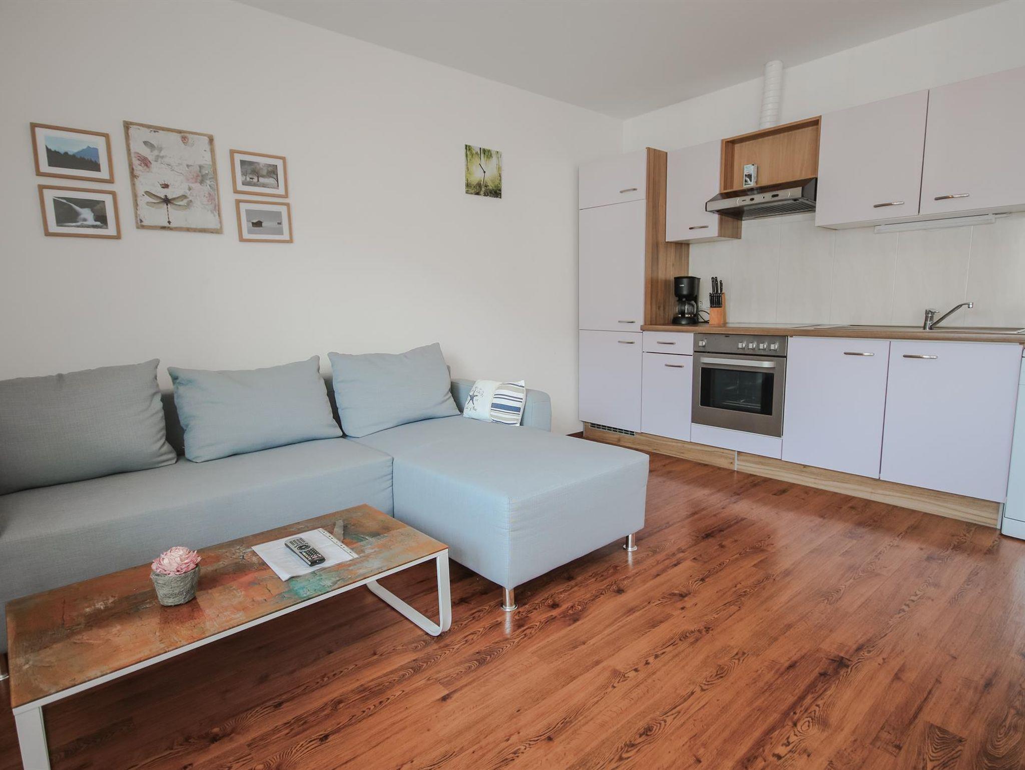 Die Appartements haben zwei getrennte Schlafzimmer, einen Wohnessbreich mit Küchenzeile sowie Bad mit Dusche und ein getrenntes WC. Balkon mit Balkonmöbel sind vorhanden.