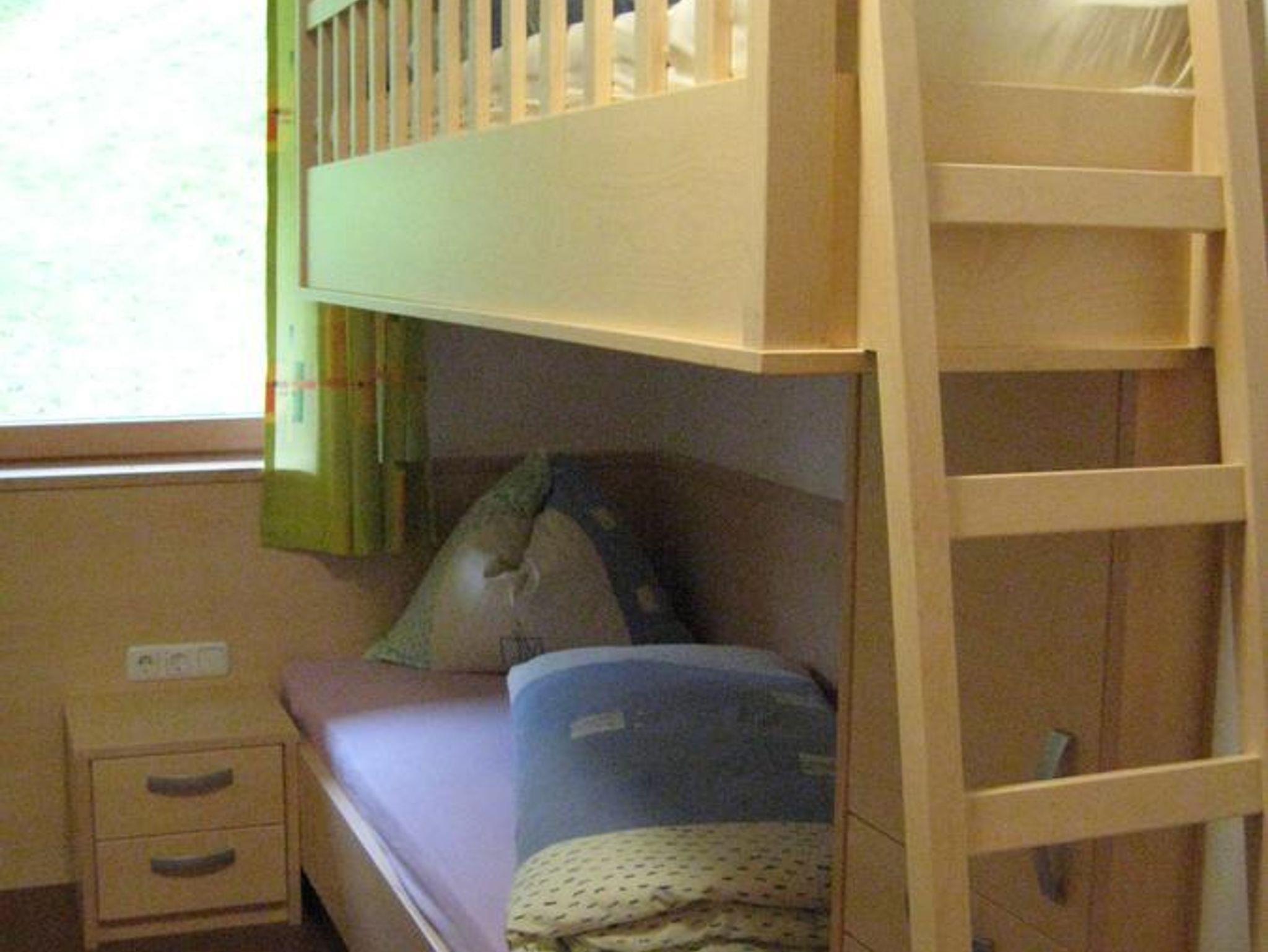 Ein Schlafzimmer ist mit einem Doppelbett, das 2. mit einem Etagenbett ausgestattet. Im Wohnzimmer haben wir eine Couch die sich problemlos zu einem Doppelschlafplatz umbauen lässt.