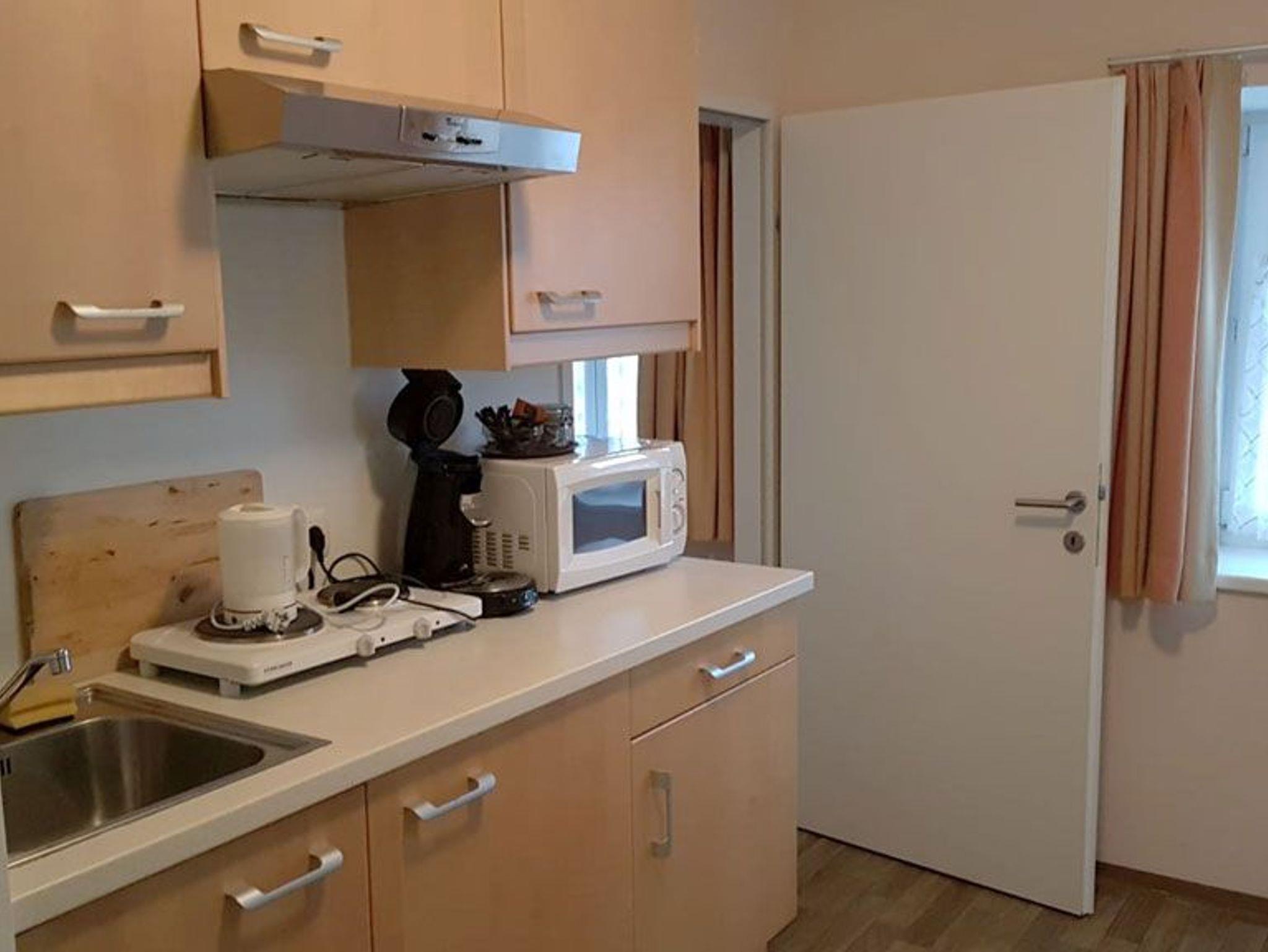 Dieses Apartment verfügt über 2 separate Schlafzimmer, eine Küchenzeile, ein Wohnzimmer, ein großes Bad, ein separates WC und einen Vorraum mit einem Einbauschrank.