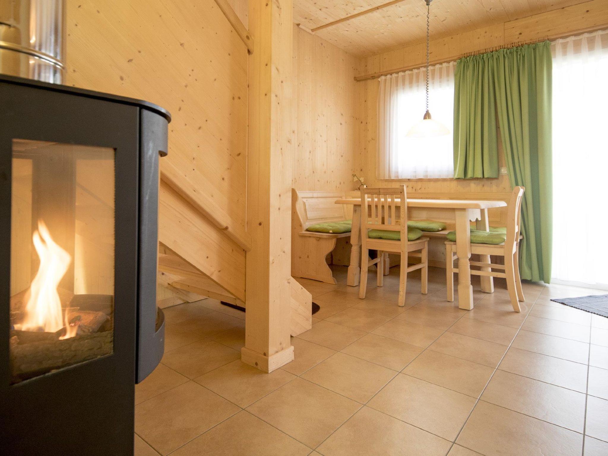 "Stolz 2a", 4-room chalet 70 m2. Spacious, modern and tasteful furnishings: living/dining room with Scandinavian wood stove, dining table and satellite TV (flat screen). 2 double bedrooms. 1 room with 1 x 2 bunk beds. Open kitchen (oven, dishwasher, 4 ceramic glass hob hotplates, microwave, electric coffee machine). Shower/WC, 2 sep. WC's. Terrace. Terrace furniture. Beautiful view of the countryside. Facilities: Internet (WiFi, free). Please note: non-smokers only. The property is one of a type of property or apartment. Different house furnishing possible. House has an outdoor bubble bath.