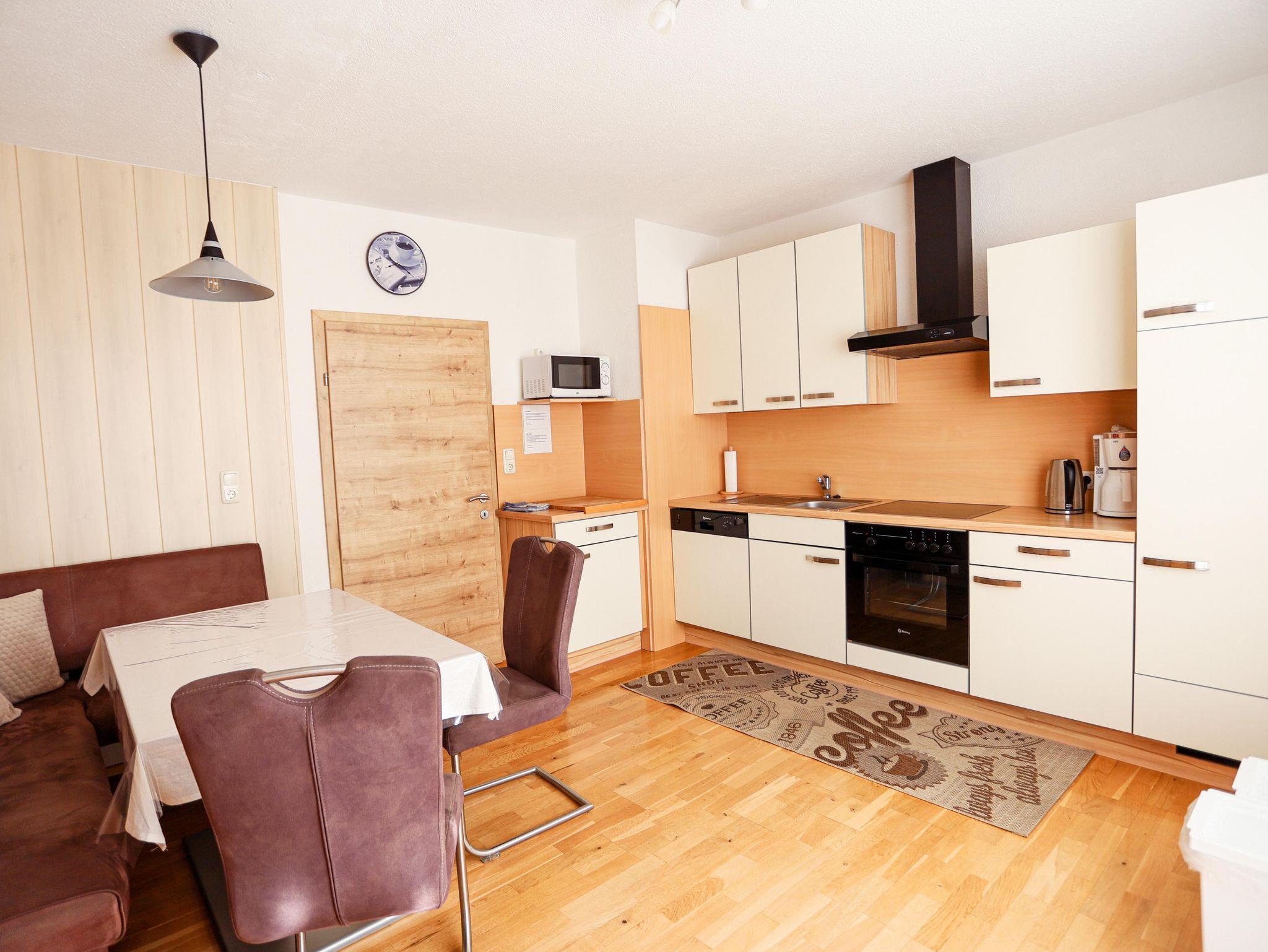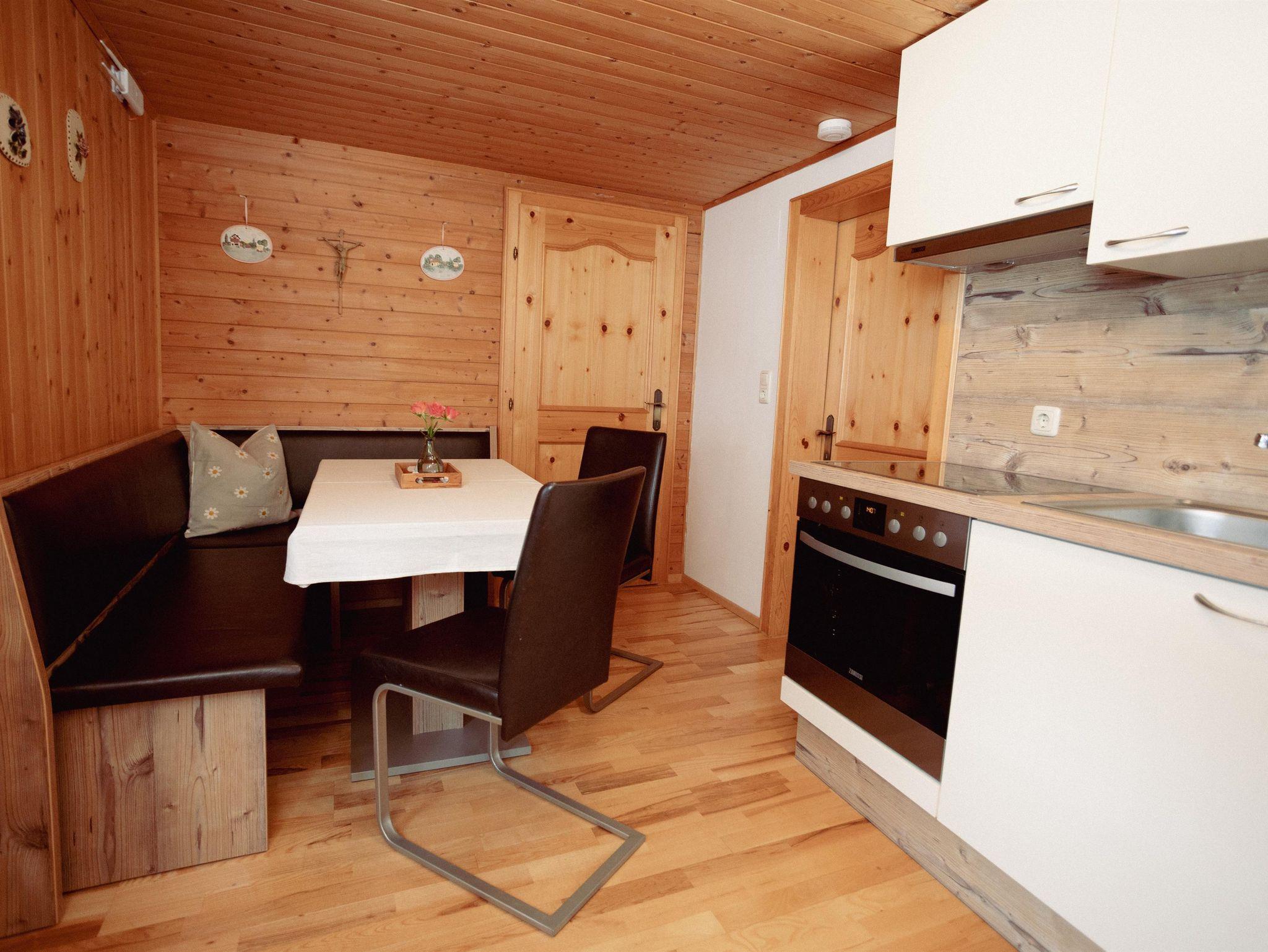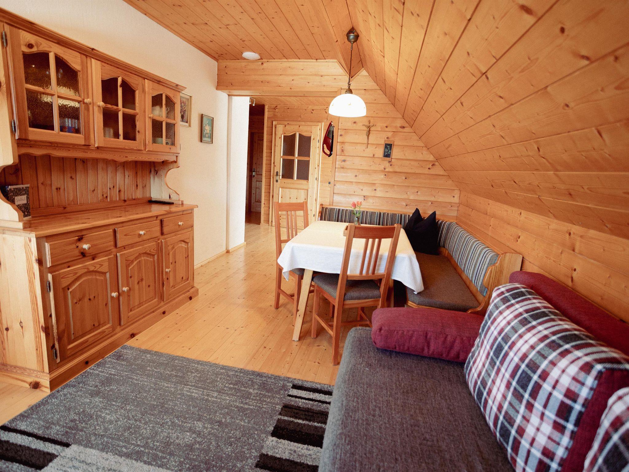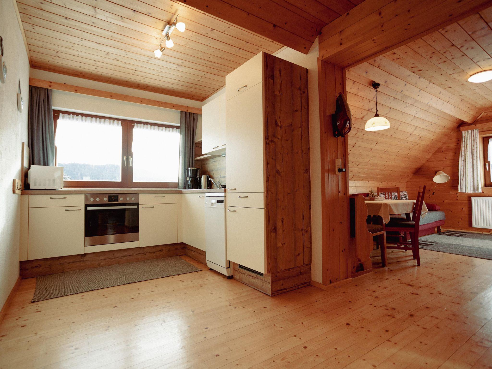 Gemütliche Wohnung mit viel Holz ausgestattet.