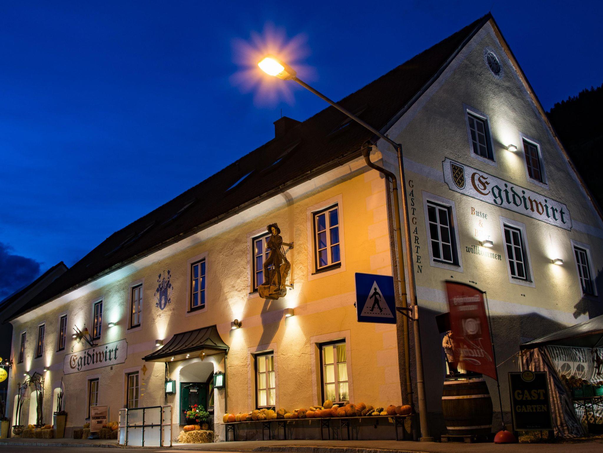 Der Egidiwirt ist ein renommierter 3 Sterne Gasthof am Rande von Murau (direkt am Murradweg). Wir bieten 6 Zimmer (1 Dreibettzimmer, 3 Doppelzimmer und 2 Einbettzimmer). Die Zimmer haben alle Dusche/WC, Sat-TV, Radio. Weiters verfügen wir noch über unser Gästehaus Leypold (2 Doppelzimmer, 1 Dreibettzimmer und 3 Appartements mit Küche), dass sich in ca. 3 Gehmin. entfernt vom Egidiwirt befindet. Frühstück bzw. Halbpension sind beim Egidiwirt einzunehmen. Die Skigebiete Kreischberg u. Frauenalpe sind mit dem Auto in wenigen Minuten zu erreichen. (7 km)