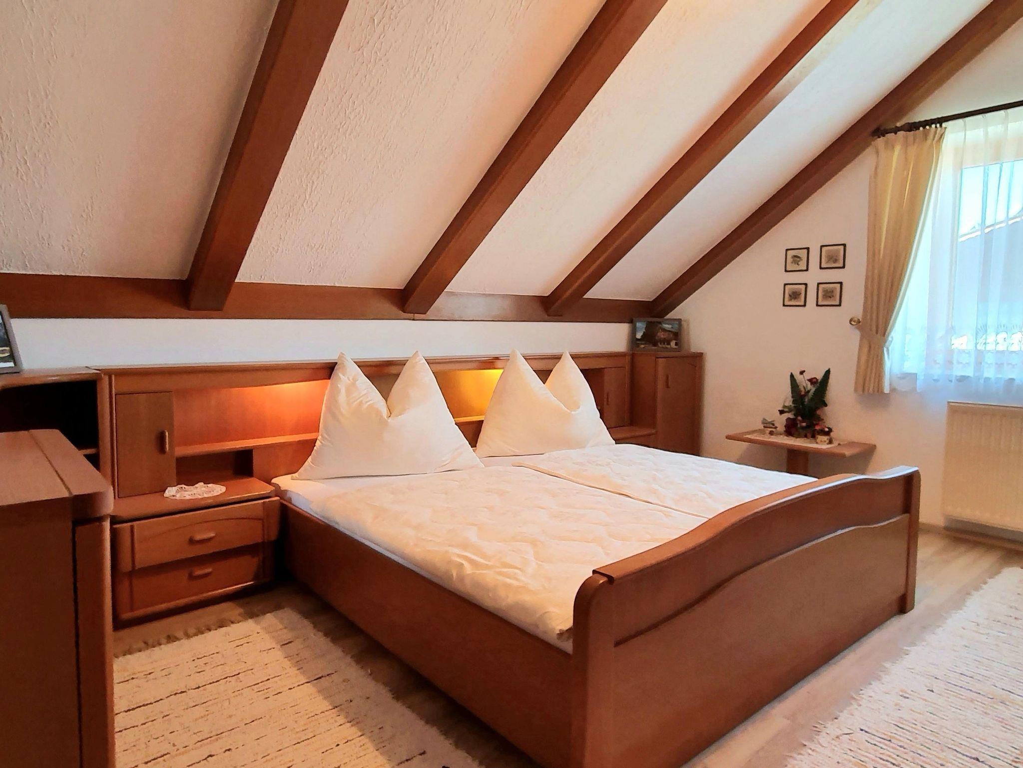 Im Dachgeschoß befindet sich eine zweite modern nostalgisch eingerichtete Ferienwohnung (73m2) Wohnzimmer mit offener Küche und Essplatz, geräumigen Schlafzimmer, Bad, Dusche, WC und Waschmaschine und großem Südwestbalkon mit Blick auf die Murauen und Schloss Obermureck für 4 Personen. In den Wohnungen ist ein DVD-Player mit einem umfangreichen CD und DVD-Sammlung vorhanden. Auf Wunsch bieten wir auch einen Brötchen Service der slowenischen Mura – Bäckerei für unsere Gäste an.