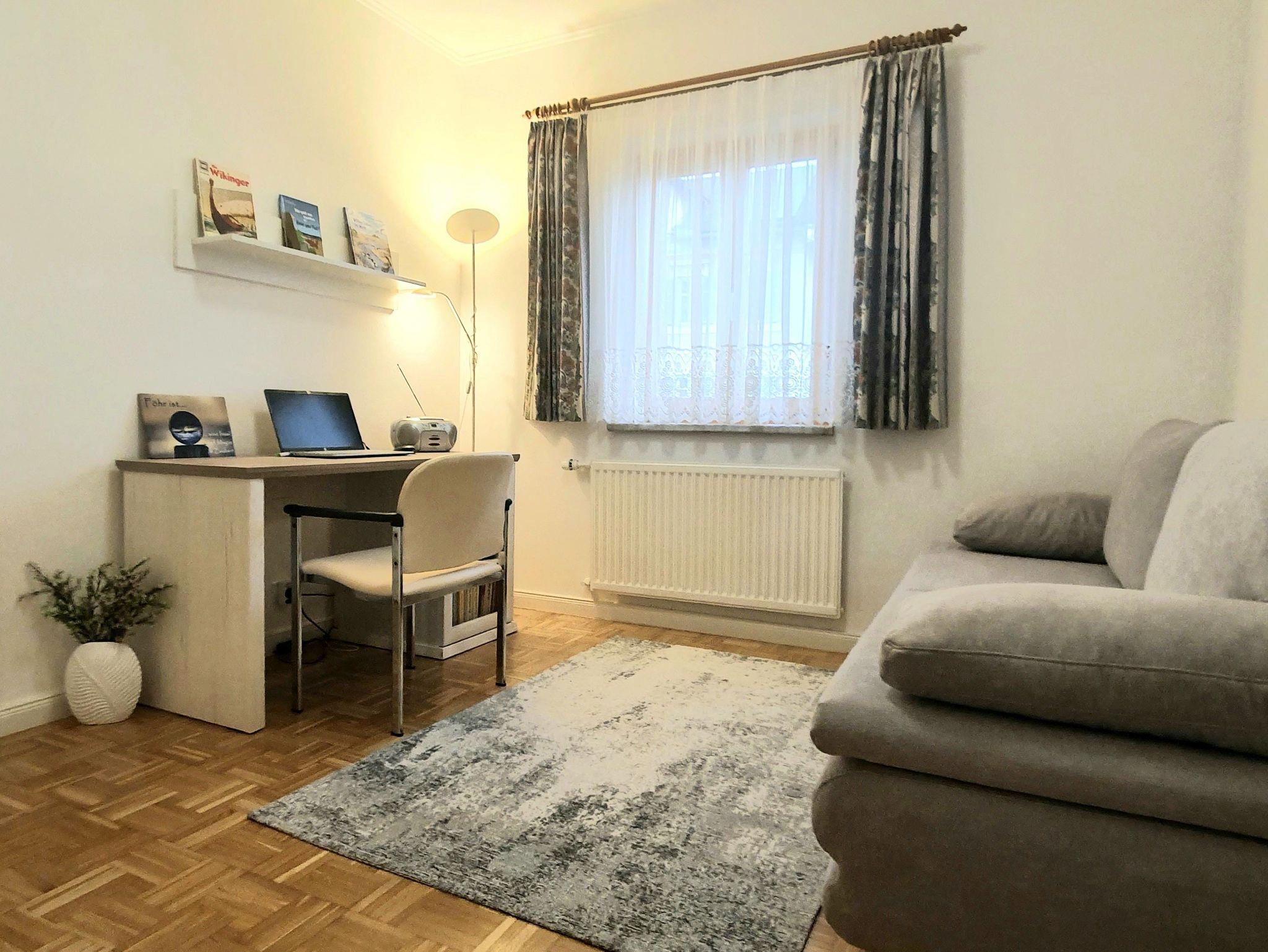 In der neuen und modern eingerichteten Ferienwohnung im Erdgeschoß auf 75 m² haben bis zu 6 Personen Platz: Schlafzimmer, Kinderzimmer, Wohnzimmer, Wohnküche, Bad/Dusche und WC separat.