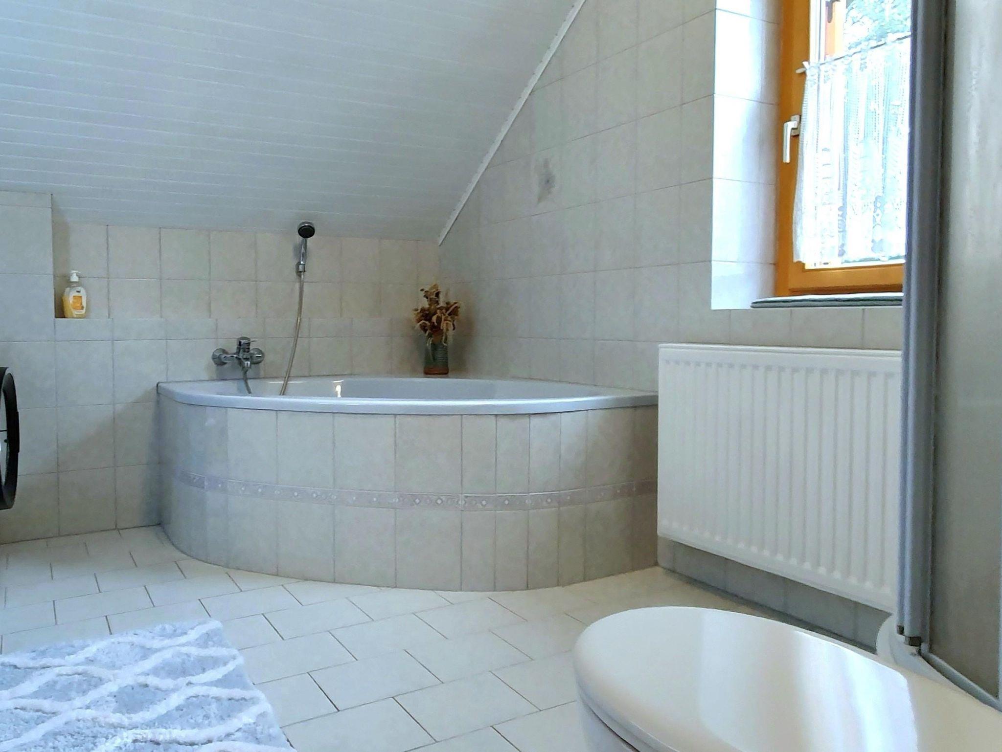 Das Haus bietet im Erdgeschoß eine neu und modern eingerichtete Ferienwohnung (75m2) für bis zu 5 Personen Platz: Wohnzimmer, Kinderzimmer, Schlafzimmer und gemütliche Wohnküche mit Tischherd, großes Bad mit Dusche und Waschmaschine. WC ist separat.