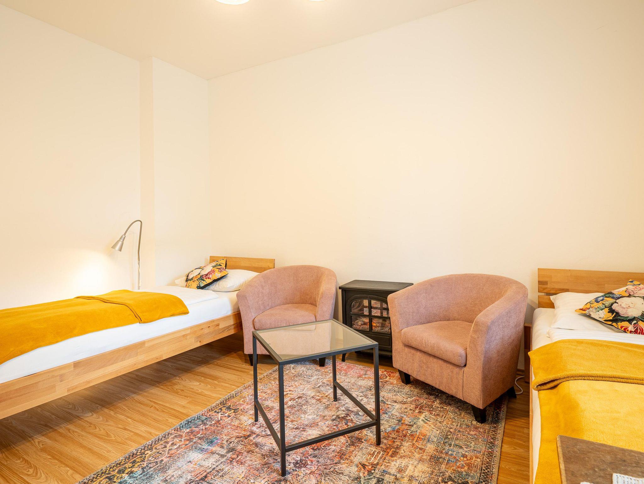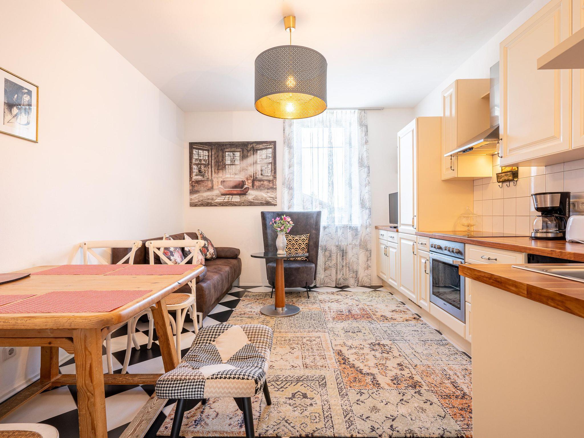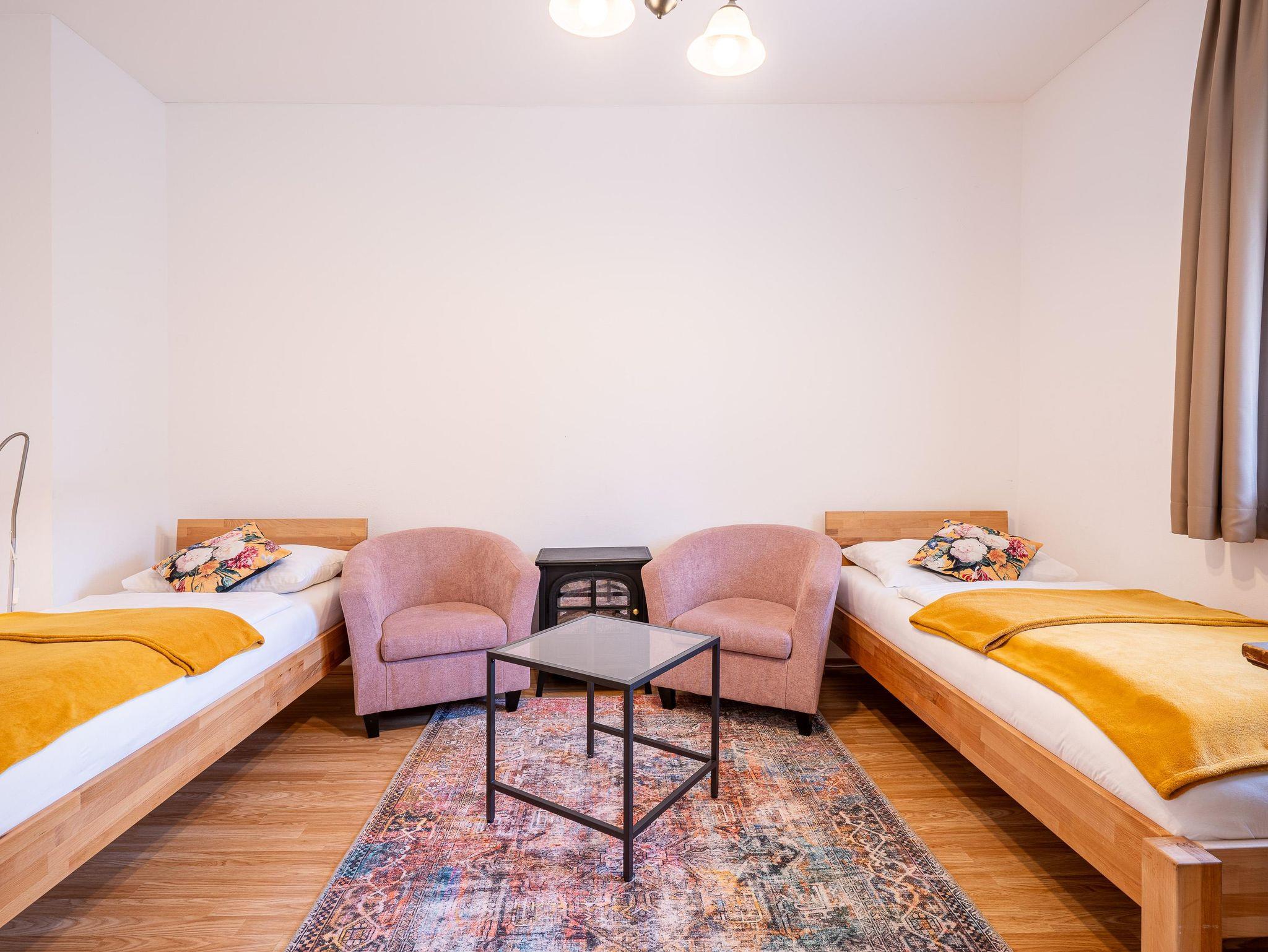 Willkommen im Apartment Deluxe, deinem perfekten Rückzugsort für einen angenehmen Aufenthalt. Das 96m² Apartment befindet sich im 1. Stock und verfügt über ein Doppelzimmer, ein Zimmer mit 2 Einzelbetten und ein Einzelzimmer. Eine gemütliche Wohnküche mit Flat-TV und einer Schlafcouch, sowie ein komfortables Bad mit laden zum Erholen nach einem ereignisreichen Tag ein. Zudem hat man die Möglichkeit auf der großen Terrasse mit Garten zu entspannen und zu verweilen.