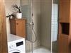 Durch den Garten mit Terrasse gelangen Sie, über ein paar Stufen, zum überdachten Eingang. Sie betreten den Vorraum, linker Hand das WC und gegenüber der große Abstellraum. Im geräumigen Wohn-/Schlafraum befindet sich rechts die Küchenzeile mit Essplatz, mittig eine bequeme Couch und dann das große Doppelbett. Angrenzend kommen Sie in das komfortable Bad (mit Waschmaschine) und Blick auf den Garten.