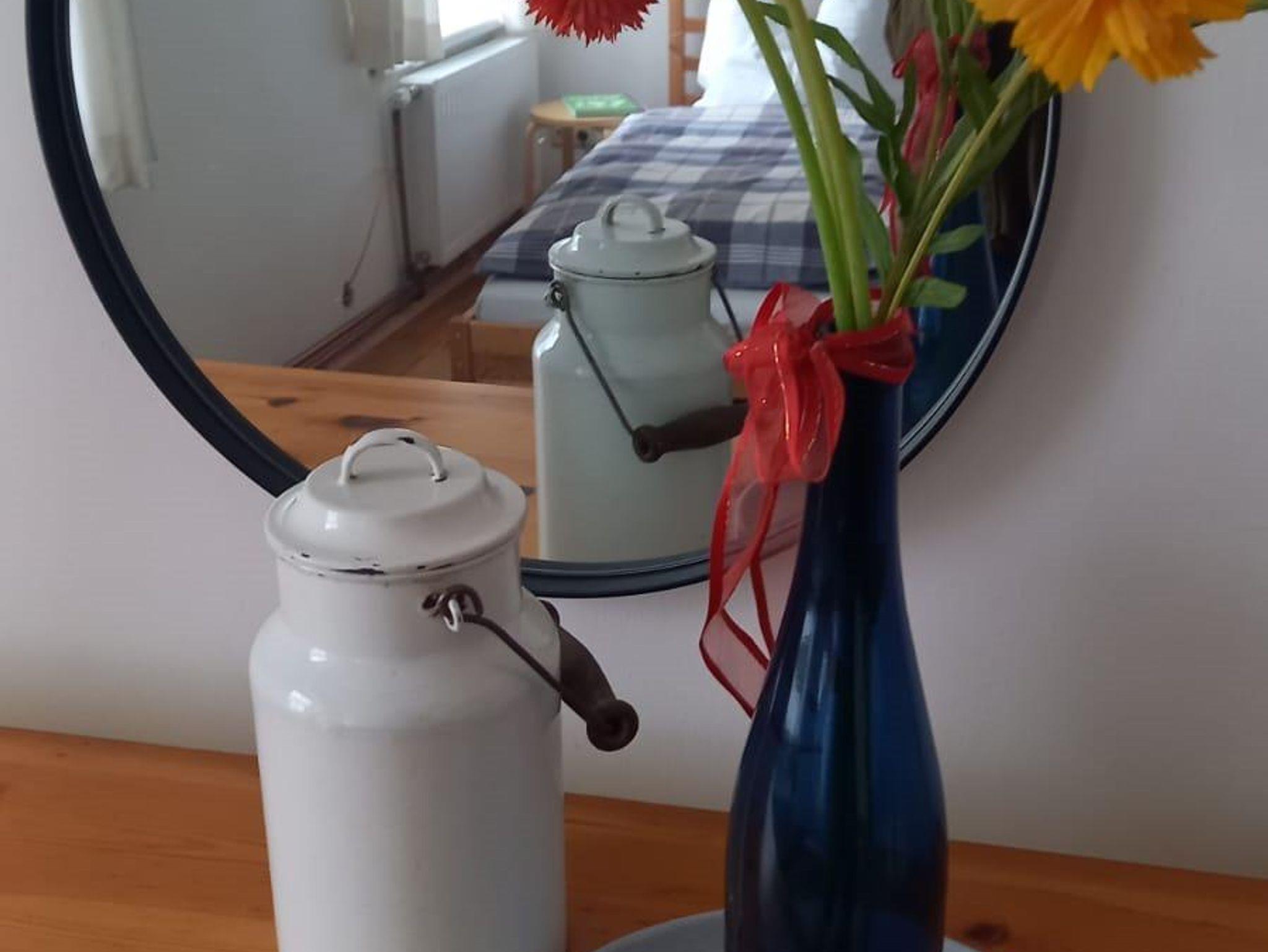 Zwei frisch renovierte Zimmer, jeweils mit eigener Dusche und WC stehen zur Verfügung. Das 2-Bett-Zimmer ist im Erdgeschoß, das Doppelzimmer im ersten Stock. Die beiden Zimmer werden durch eine gemeinsame Küche begangen, die zum gemütlichen Verweilen einlädt. Beide Zimmer verfügen auch über eine Leseecke.