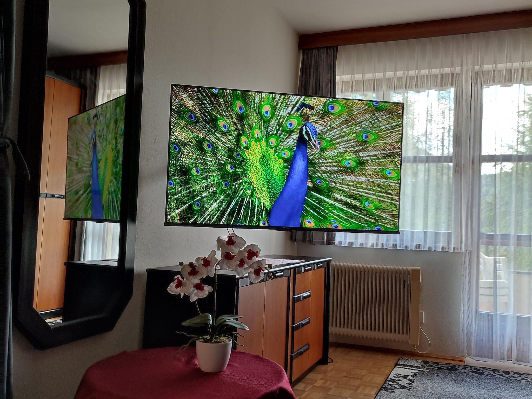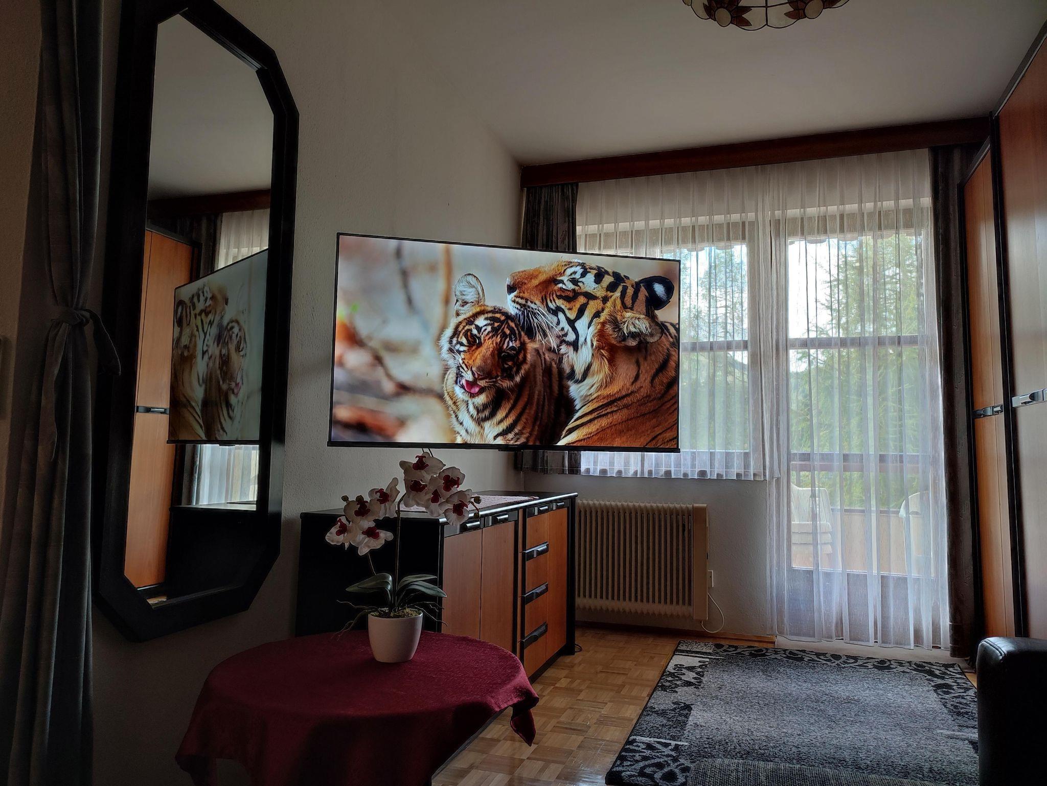 1 Wohnschlafzimmer mit Doppelcouch, SAT-TV 50Zoll Flat Screen mit Netflix und integriertem DVD-Player,