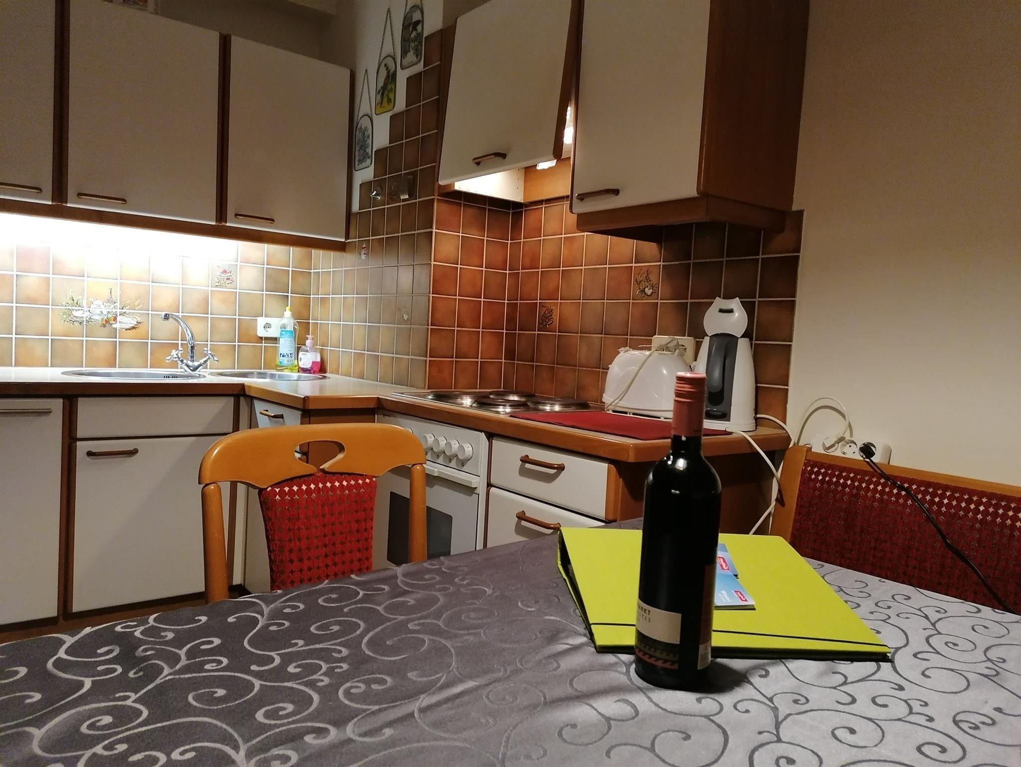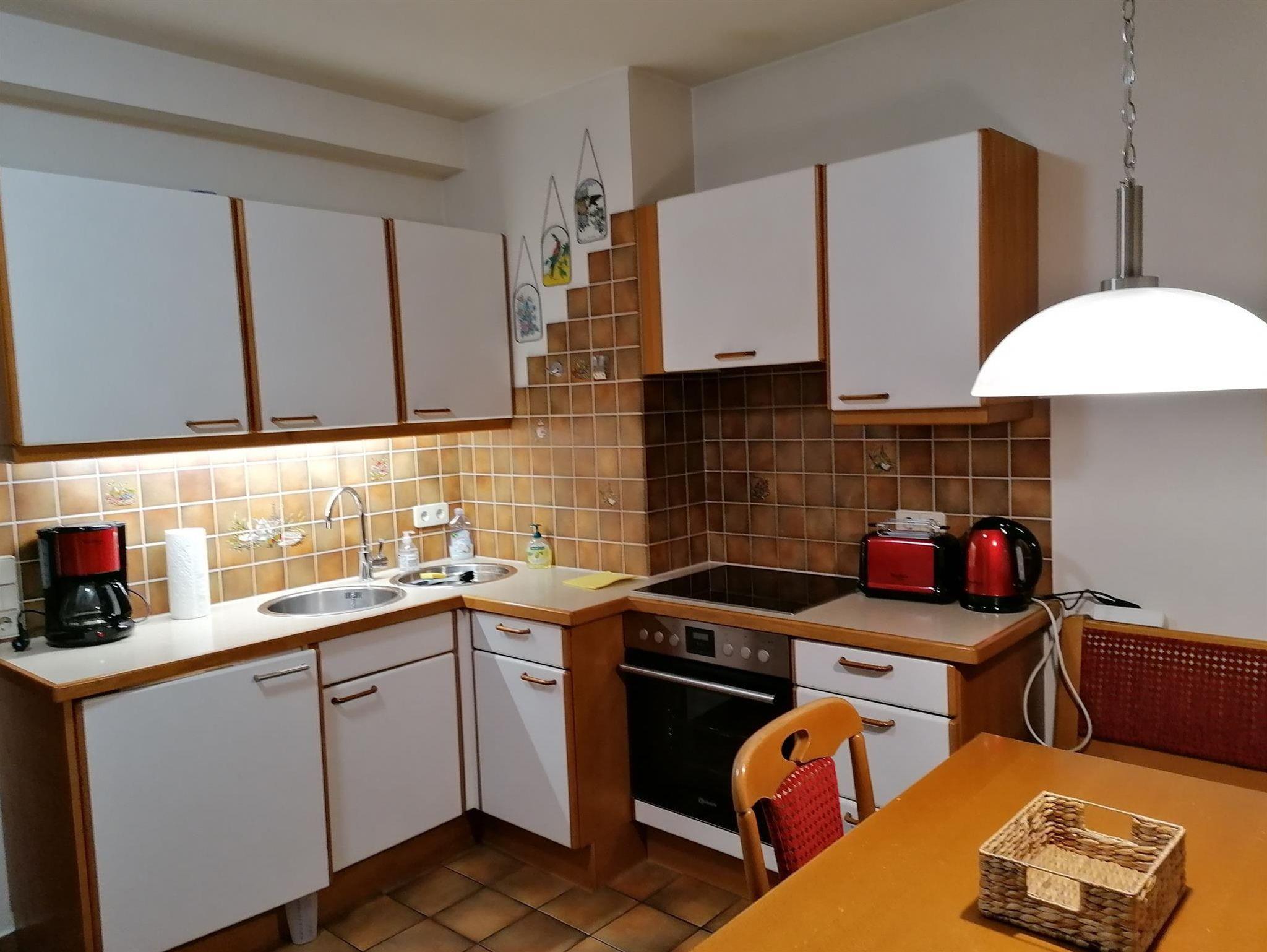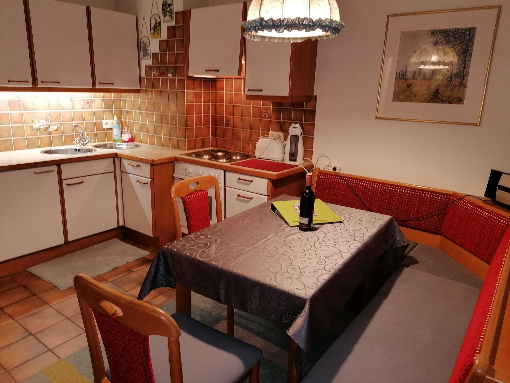 1 Küche mit großem Esstisch, Kaffeemaschine, Mikrowelle, Toaster, Kühlschrank/Gefrierfach, E-Herd mit Backofen, Fön, Bügeleisen, CD-Player und Radio