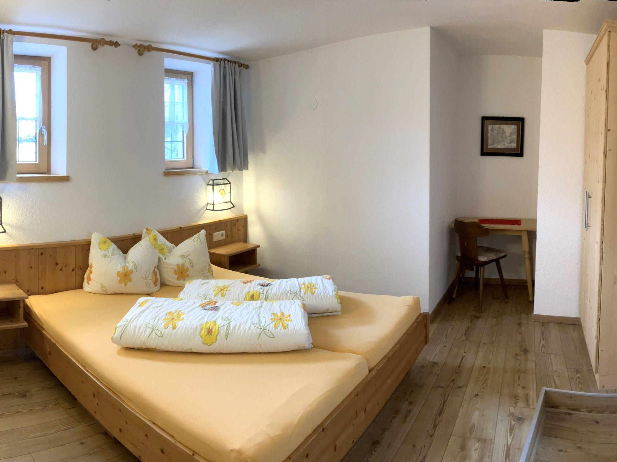 The homely, rustic atmosphere is enhanced by the parquet flooring, elegant wooden furniture, and thick walls painted white. There are two separate bedrooms. The centrepiece of the apartment is the living room-kitchen with a fully-equipped kitchen unit, a dining table with a bench and four chairs and a comfortable living room area. Convenient and extensive self-catering is enabled by a dishwasher, a stove with four rings and an oven, a microwave, coffee machine, fridge and freezer compartment. After a day trip you can relax in the living room on a three-seater sofa and an armchair, next to the display cabinet with suitable glasses for a drink in the evenings. Satellite TV provides entertainment in the evening. The bathroom has a bath with a shower attachment and shower curtain, a double washbasin, a WC and a bidet, as well as a window. The apartment is heated with radiators in all the rooms.
