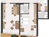 • Wohnbereich mit Küche, Esstisch und ausziehbarer Couch