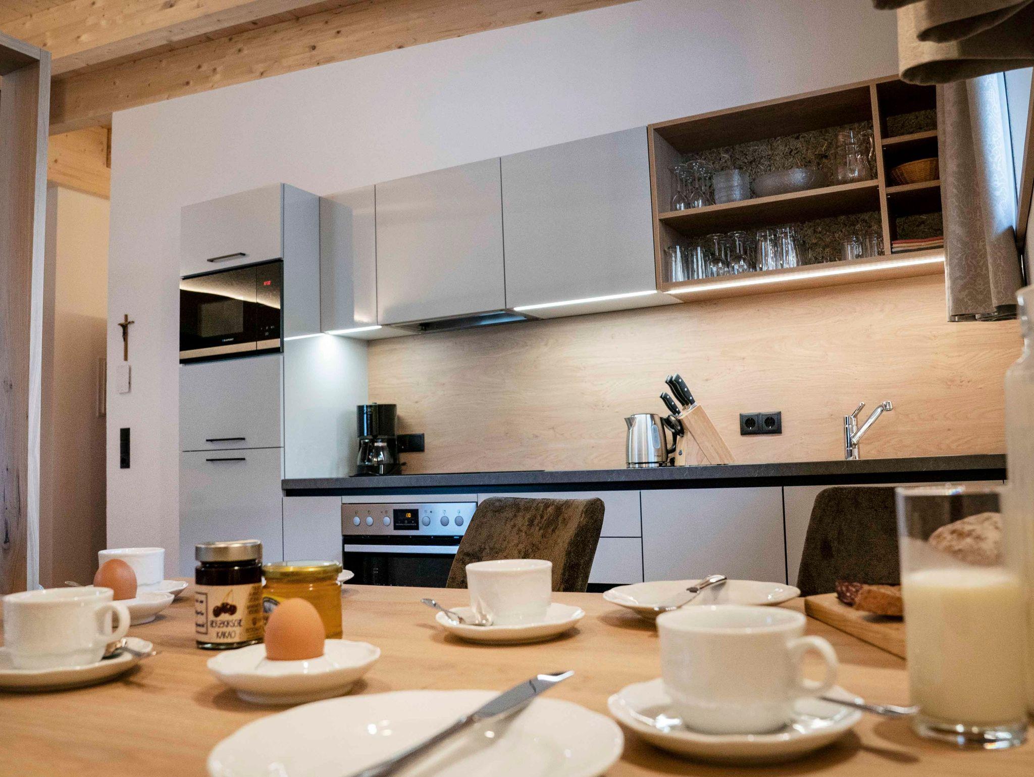 6 Apartments strahlen seit Dezember 2021 im neuen Glanz mit wohnlichen Böden und Möblen aus heimischen Hölzern. 2 weitere Wohnungen laden im gemütlichen Landhausstil unter dem Fichtenholzdachstuhl zum Urlauben ein.