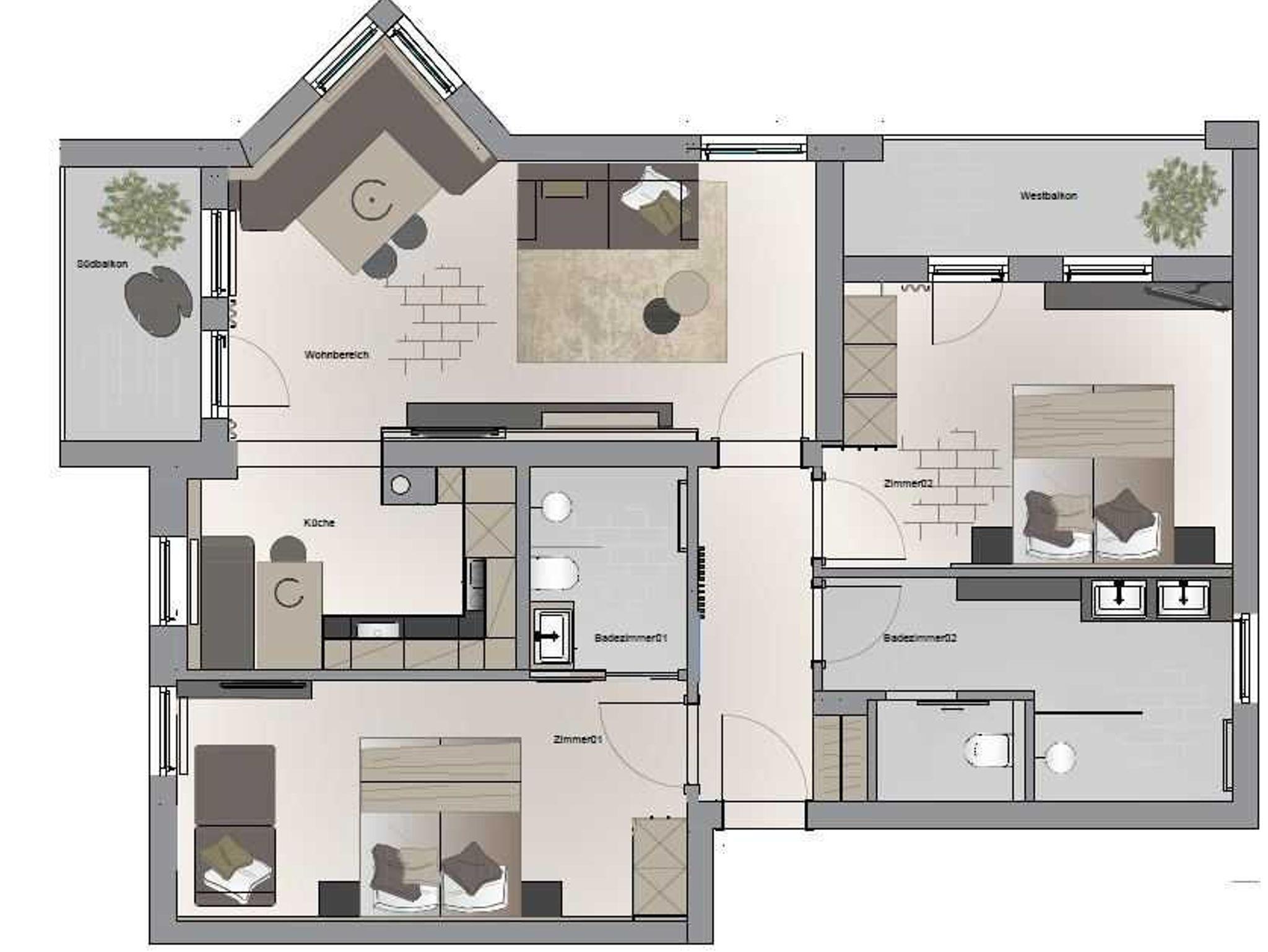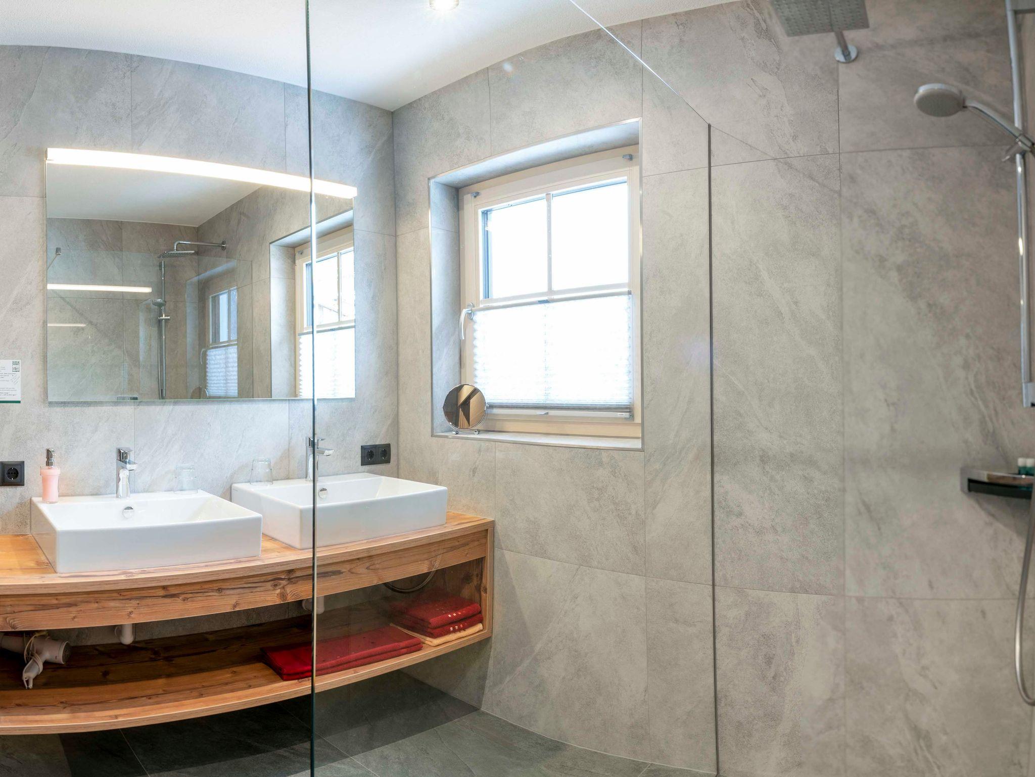 Die Ferienwohnung Alpenrose liegt im 1. Stock und versprüht alpine Gemütlichkeit mit Möbeln und Böden aus heimischen Hölzern. Mit 2 Schlafzimmern und 2 Badezimmern bietet sie auf 80 m2 Raum und Erholung für Familien und Pärchen - und gleich zwei überdachte Balkone nach Süden und Westen mit herrlichem Dreiländerpanorama!