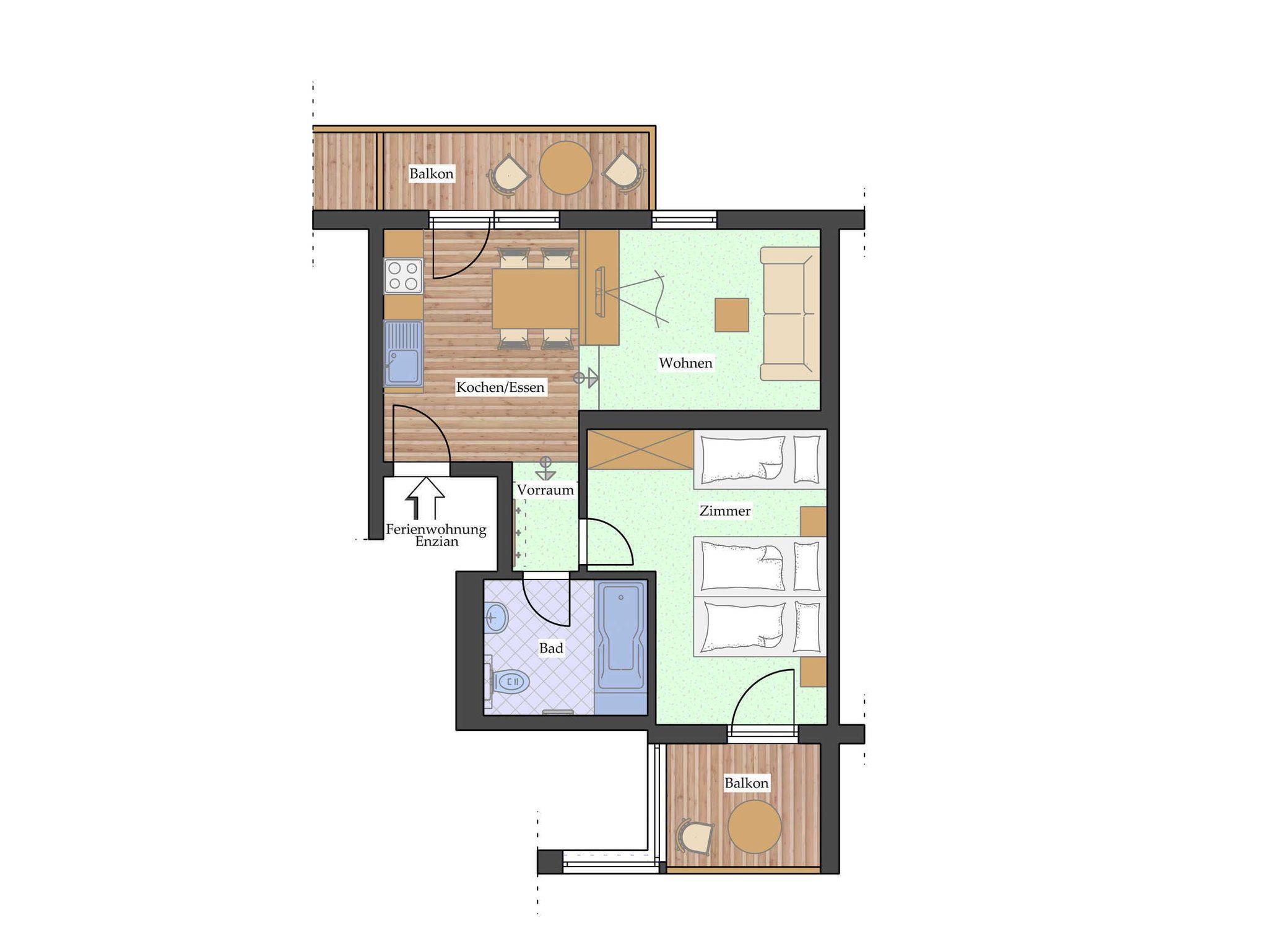 Unsere neuerbaute Ferienwohnung Enzian liegt gemütlich unter den Dachschrägen des Hauses und ist dabei geräumig und großzügig. Hier fühlen Sie sich bestimmt rundherum wohl und geborgen. Geniessen Sie die ersten Sonnenstrahlen am Ostbalkon und den herrlichen Ausblick vom Westbalkon.