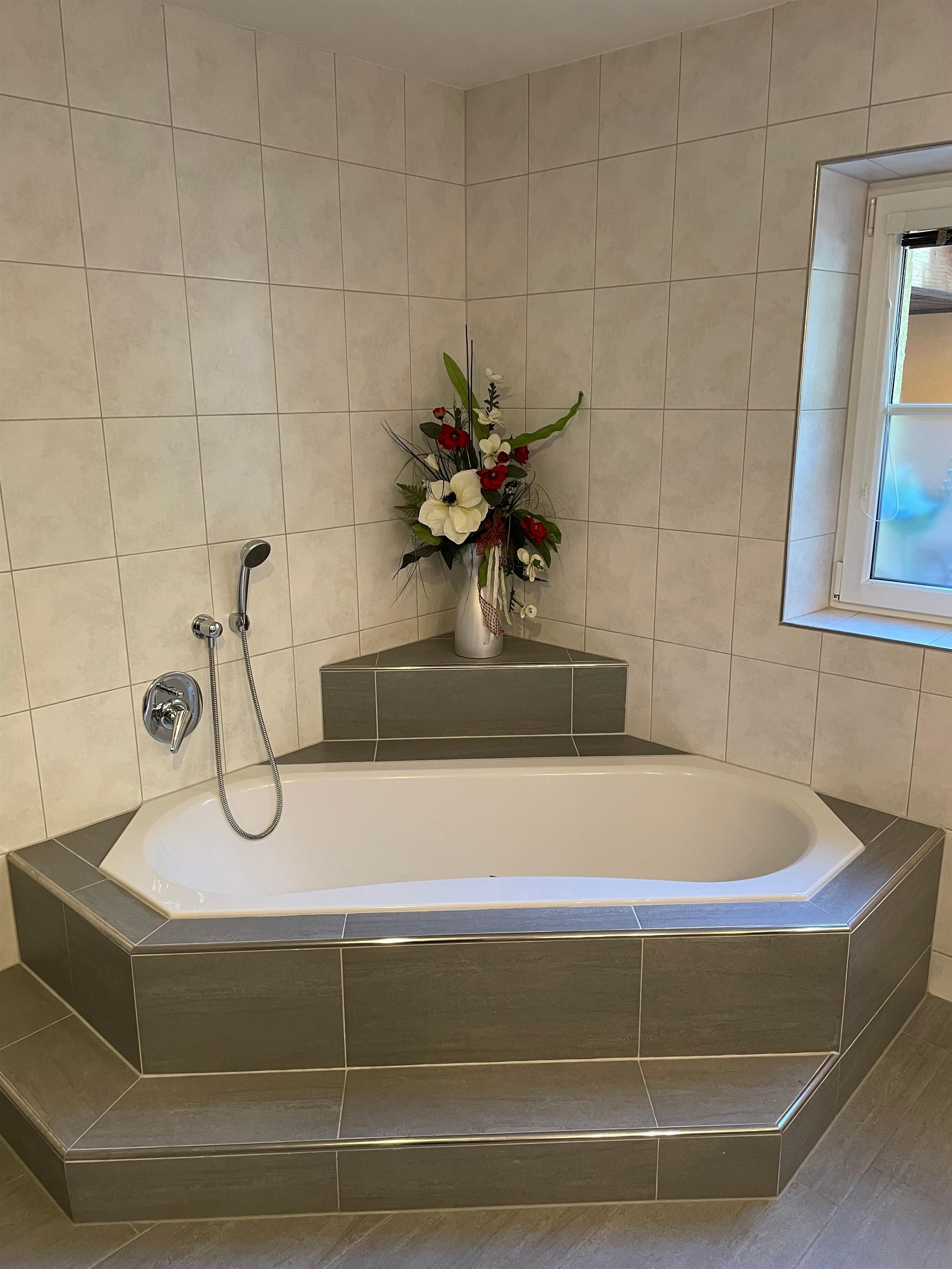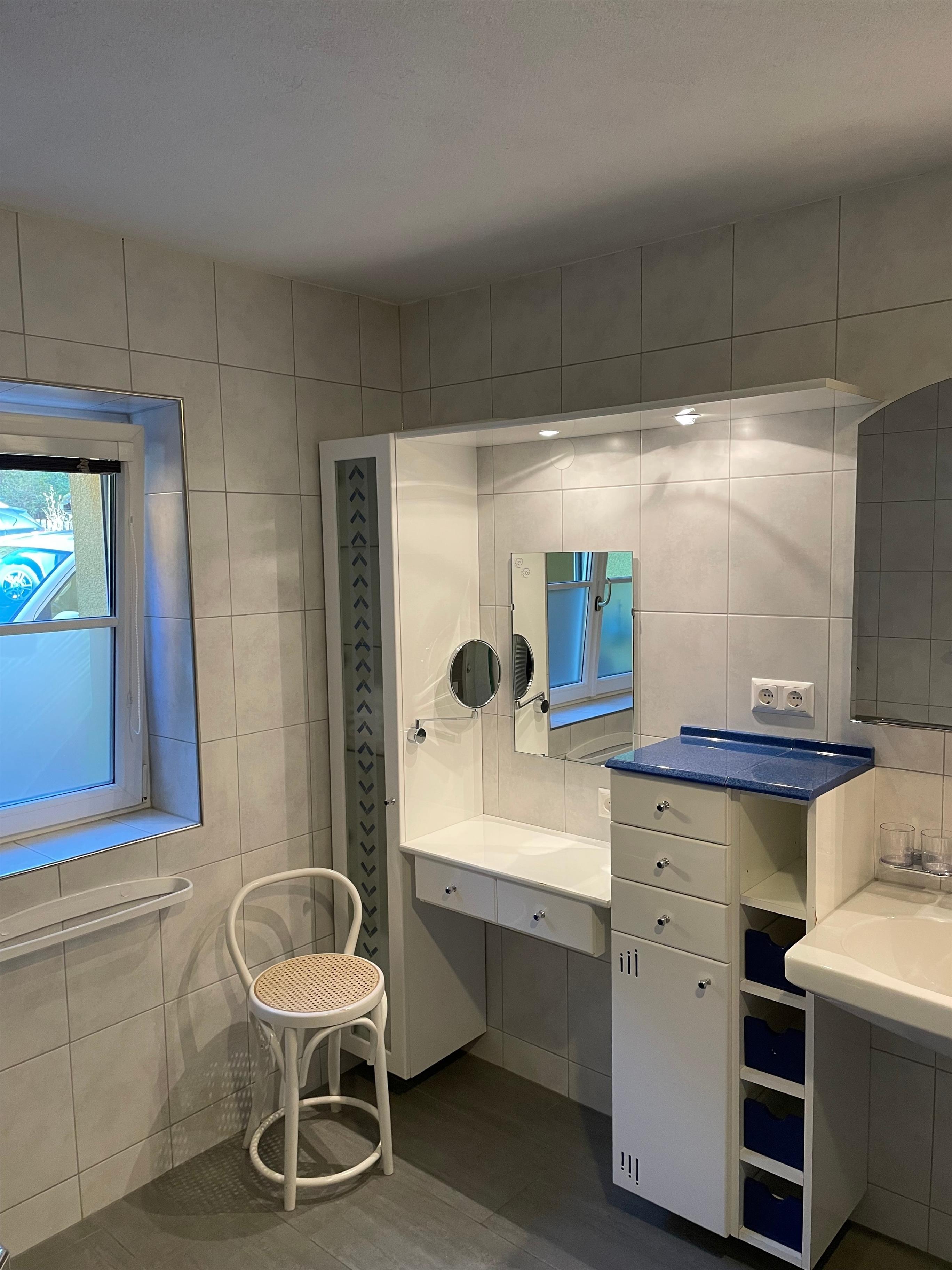 Ein Bad mit Badewanne und Dusche und für die Damen einen Schminktisch vervollständigen diese wunderschöne Wohnung.