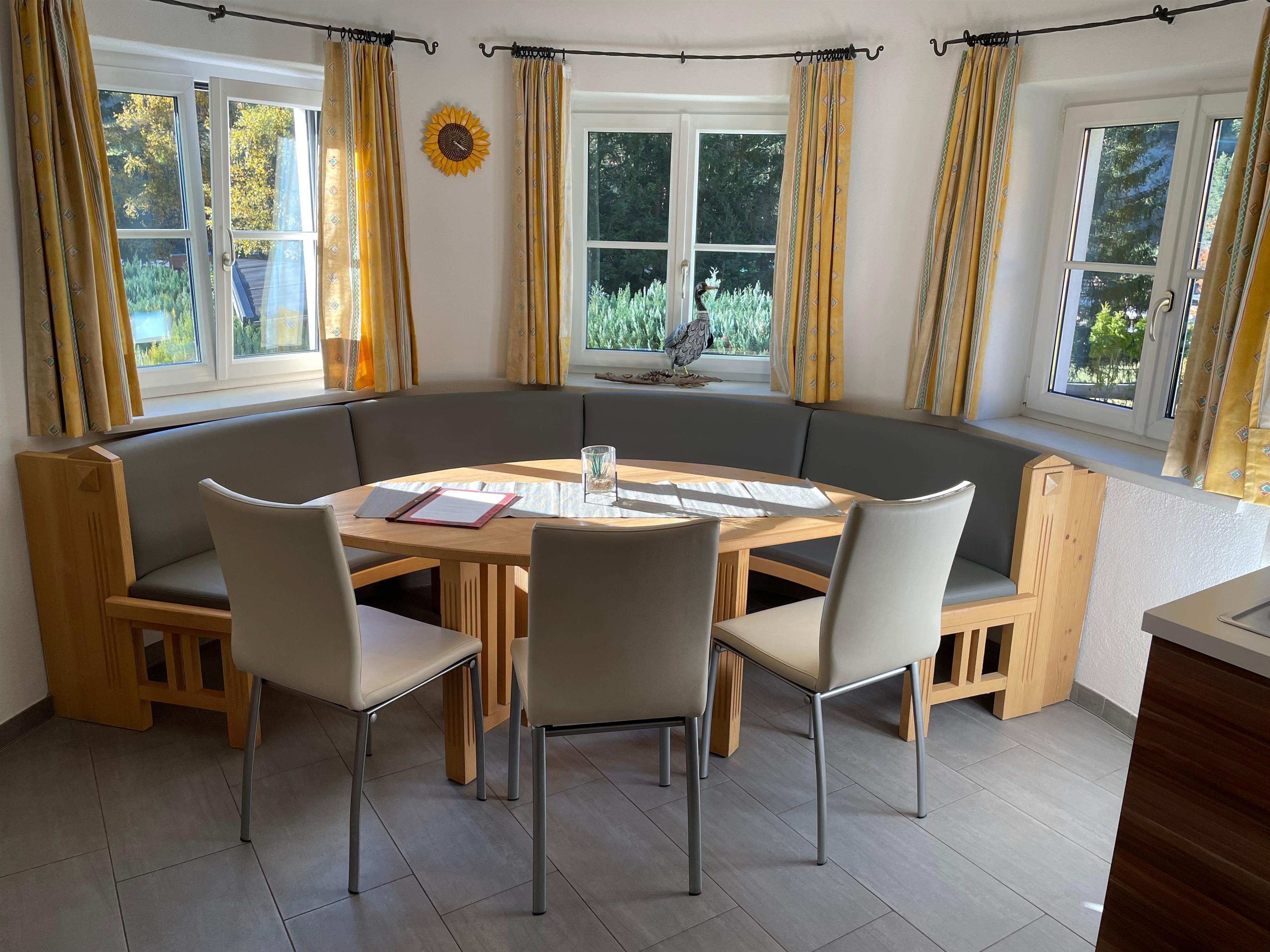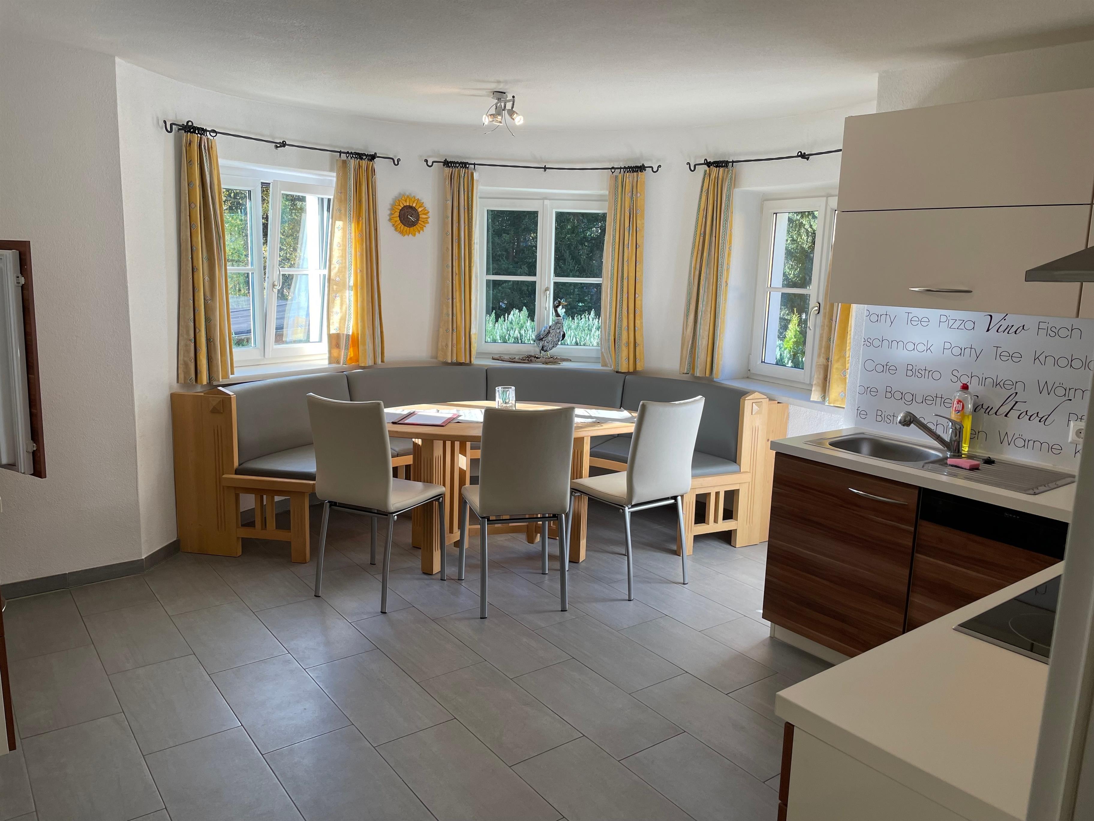 Die große lichtdurchflutete Küche mit einer gemütlichen Eckbank bietet Ruhe und Entspannung. Selbstverständlich sind hier alle Geräte enthalten, die Sie auch von zu Hause aus kennen, Herd, Spülmaschine, Microwelle um nur einige zu nennen.