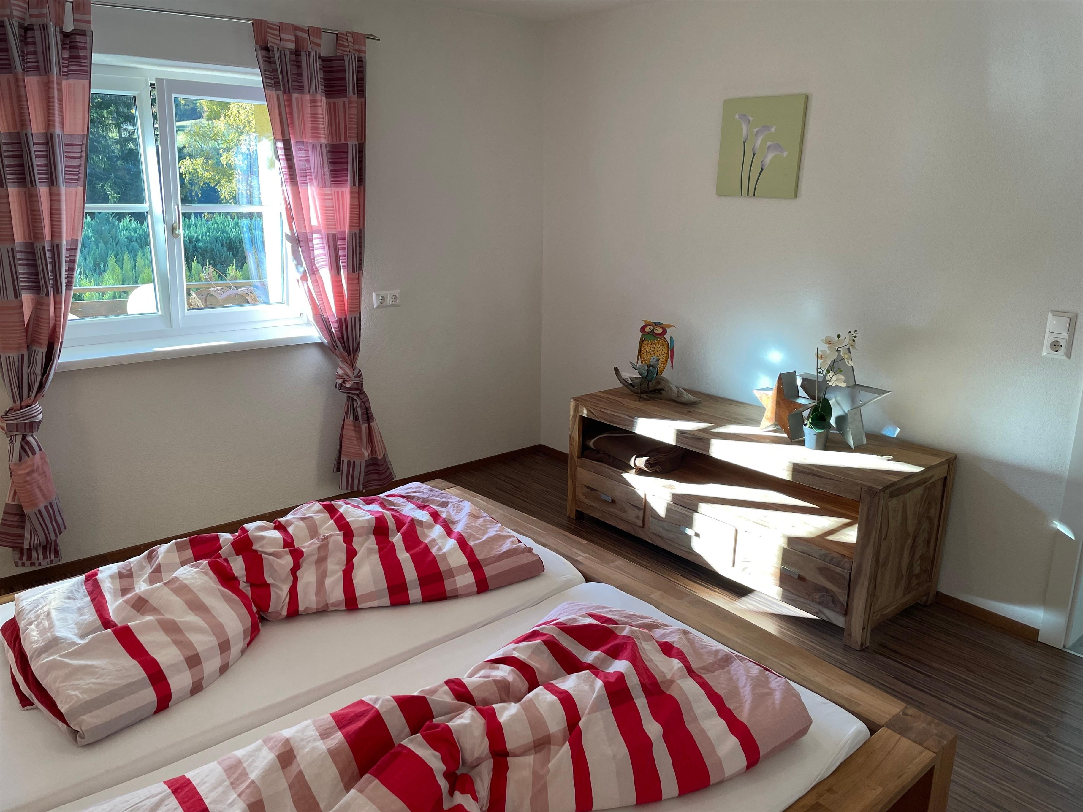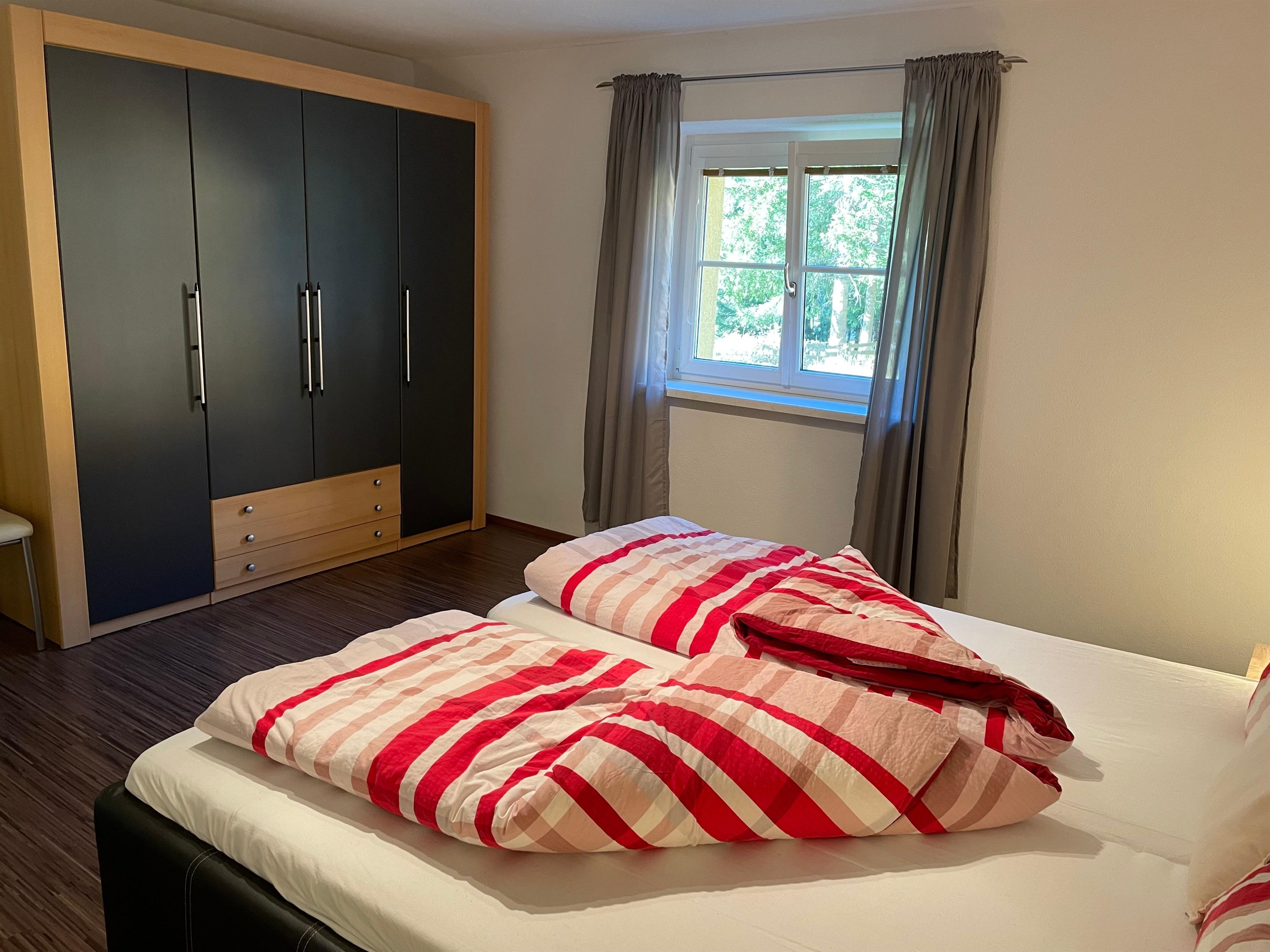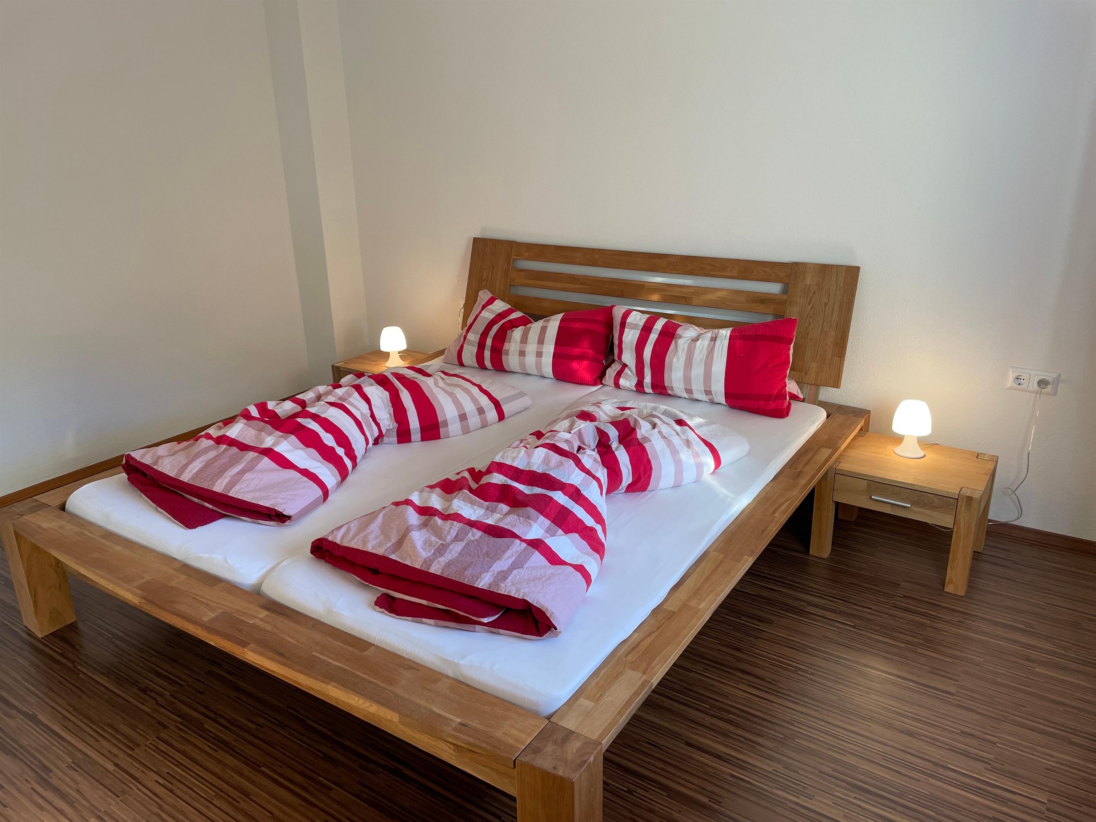 Das Schlafzimmer mit einem Doppelbett (180cm x 200cm) bietet Ihnen erholsame Nächte.