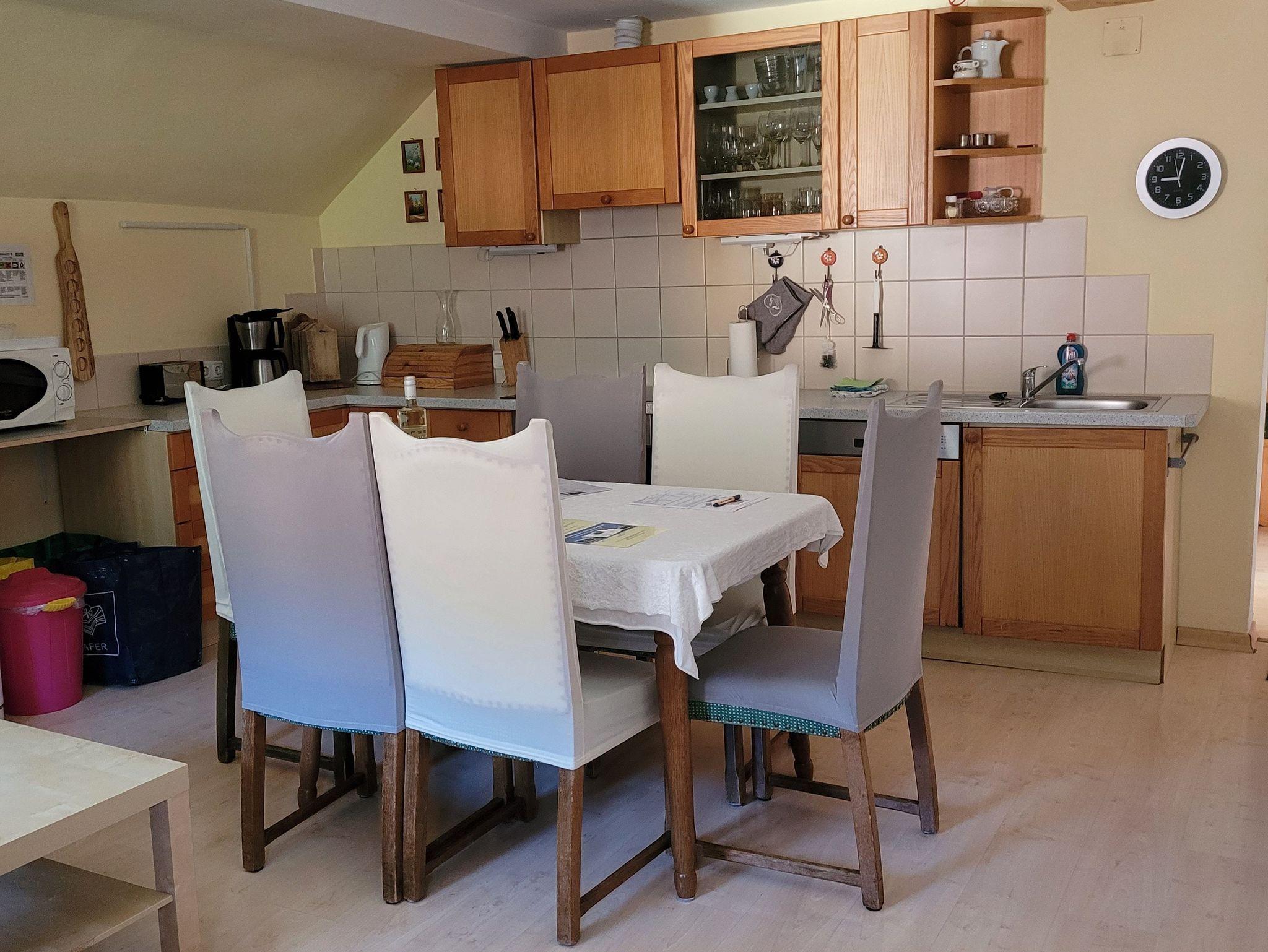 Diese ca. 110m² große Fewo im EG verfügt über einen eigenen Eingang, 2x Doppelzimmer und 1 Dreibettzimmer zzgl. Kinderbett, 1 x Bad mit WC/DU und Badewanne. Desweiteren verfügt diese Wohnung über eine große & gemütliche Küche sowie einem kleinen Wohn- und Fernsehzimmer.
