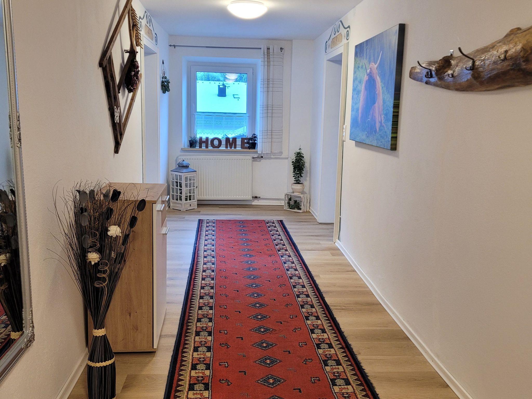 Diese ca. 110m² große Fewo im EG verfügt über einen eigenen Eingang, 2x Doppelzimmer und 1 Dreibettzimmer zzgl. Kinderbett, 1 x Bad mit WC/DU und Badewanne. Desweiteren verfügt diese Wohnung über eine große & gemütliche Küche sowie einem kleinen Wohn- und Fernsehzimmer.