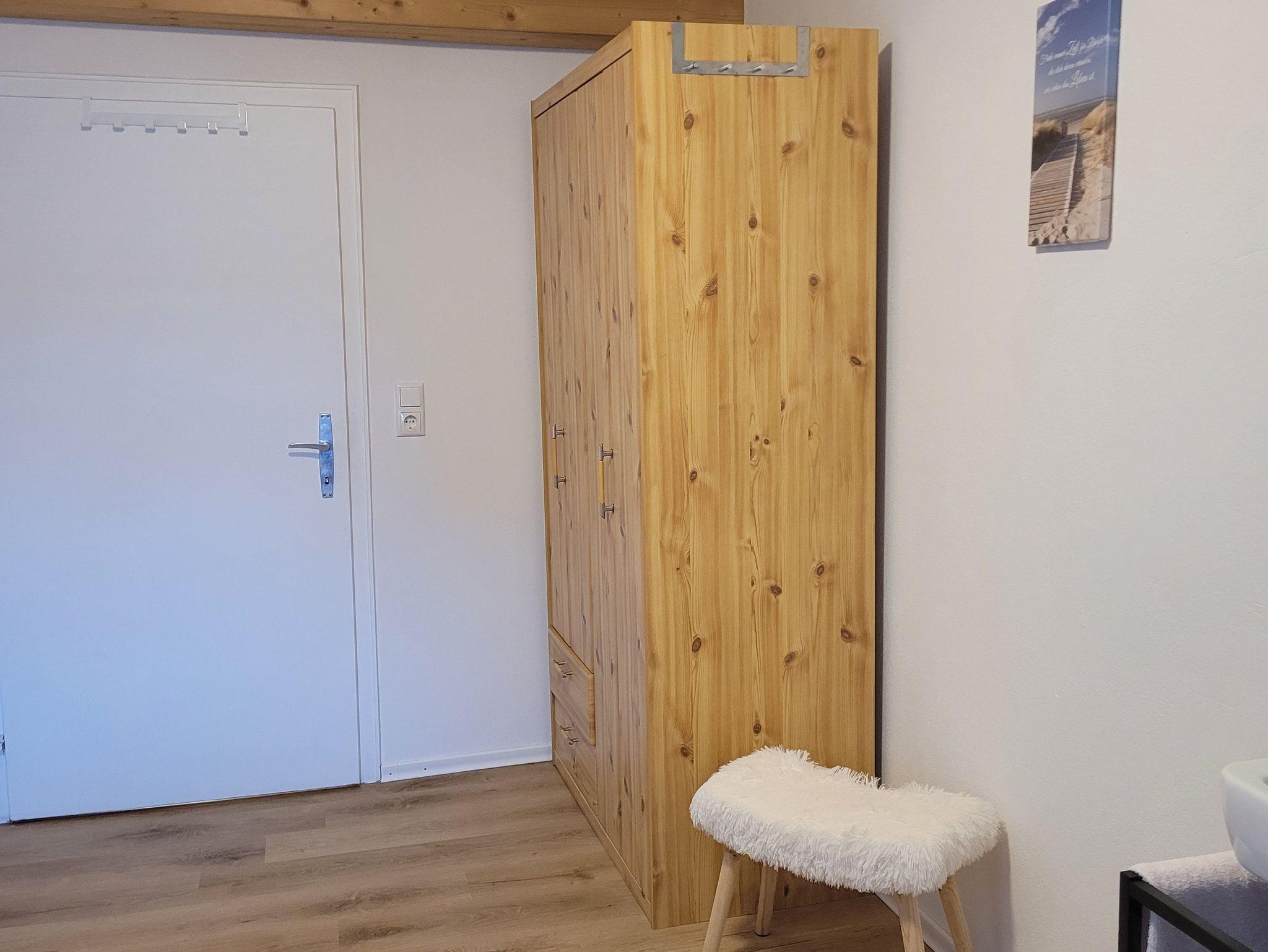Die neue Ferienwohnung ist für 4 bis 9 Personen geeignet und besteht aus 3 Schlafzimmern, sowie einer komplett ausgestatteten Wohnküche mit Esstisch und Schlafcouch. Gäste schätzen besonders die vollständige Barrierefreiheit der Ferienwohnung sowie eine eigene Dusche mit Waschbecken in jedem Zimmer.