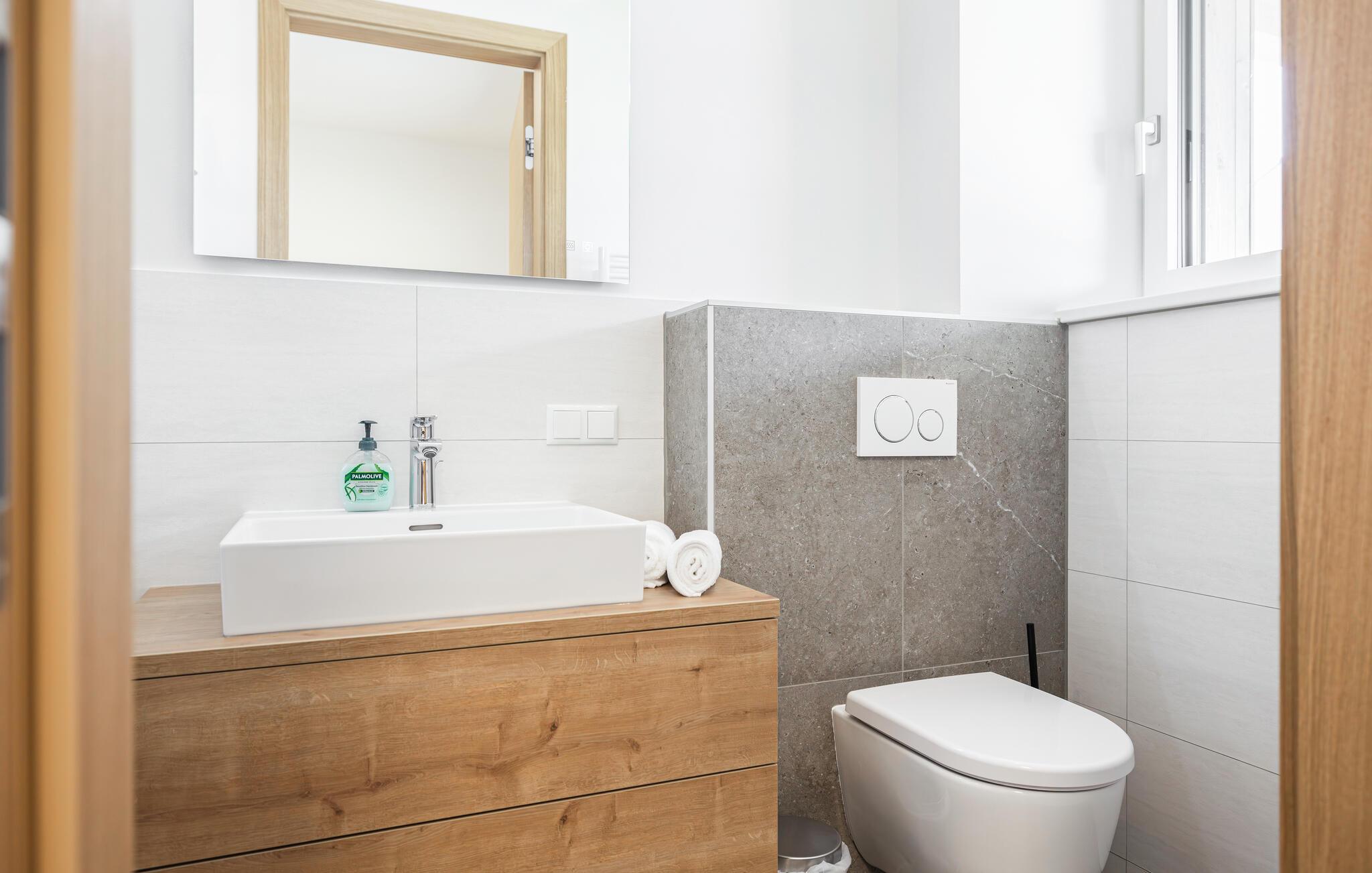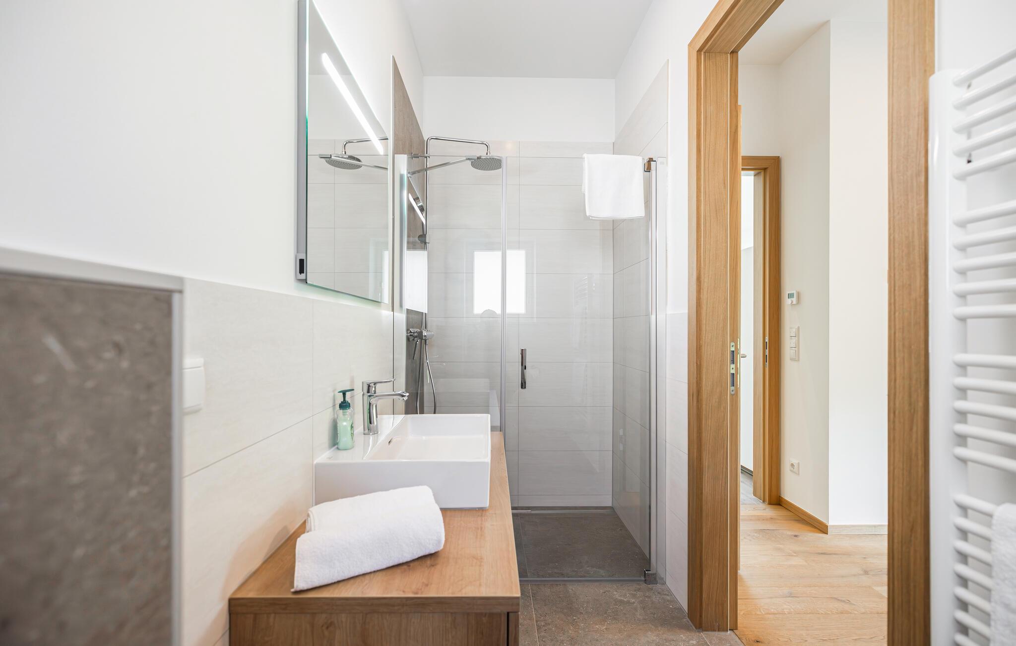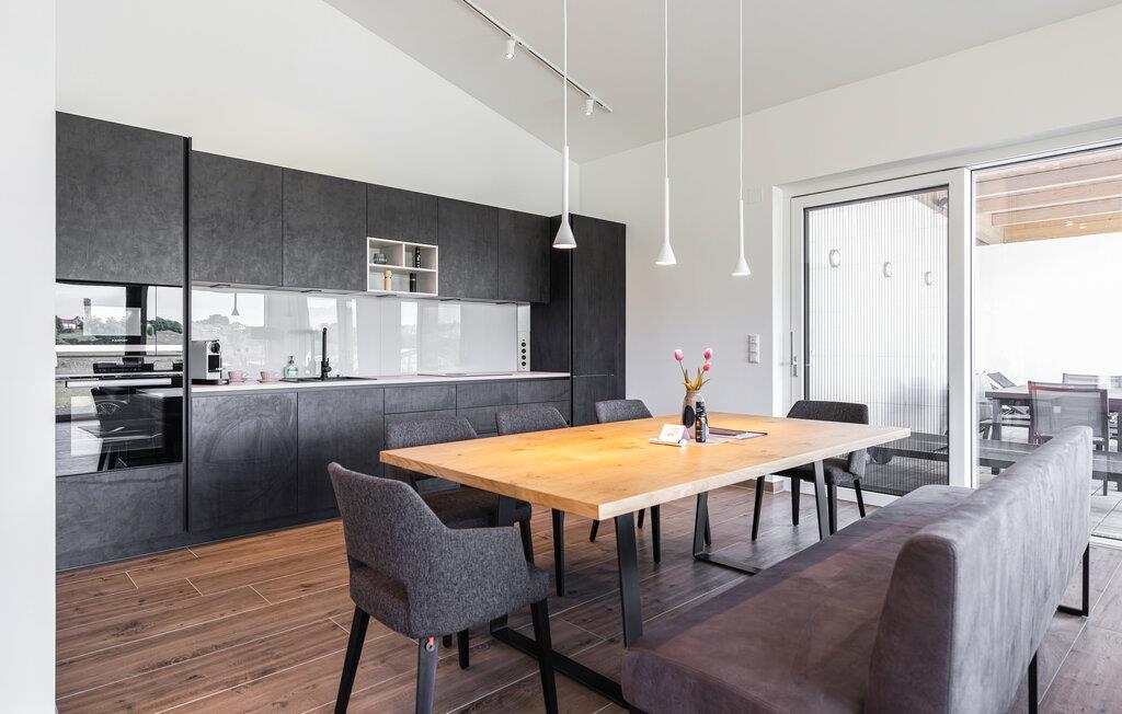 En ferie med sus, dus og masser af komfort. Det er, hvad der venter for familien i denne indbydende villa i Neudauberg. Huset er virkelig flot indrettet med god sans for detaljen og i behagelige farveskalaer, der giver rummene et varmt og lækkert udtryk. Interiøret emmer af kvalitet over hele linjen, så fyld dagene op med god tid til tingene. Lad amatørkokkene kræse om livretterne i det moderne køkken, mens andre dækker op til den store middag eller slapper af med en god bog. Senere kan I hive brætspillene frem eller rykke over i sofaerne og smide en god film på tv'et, mens I lægger planer for de kommende dage.