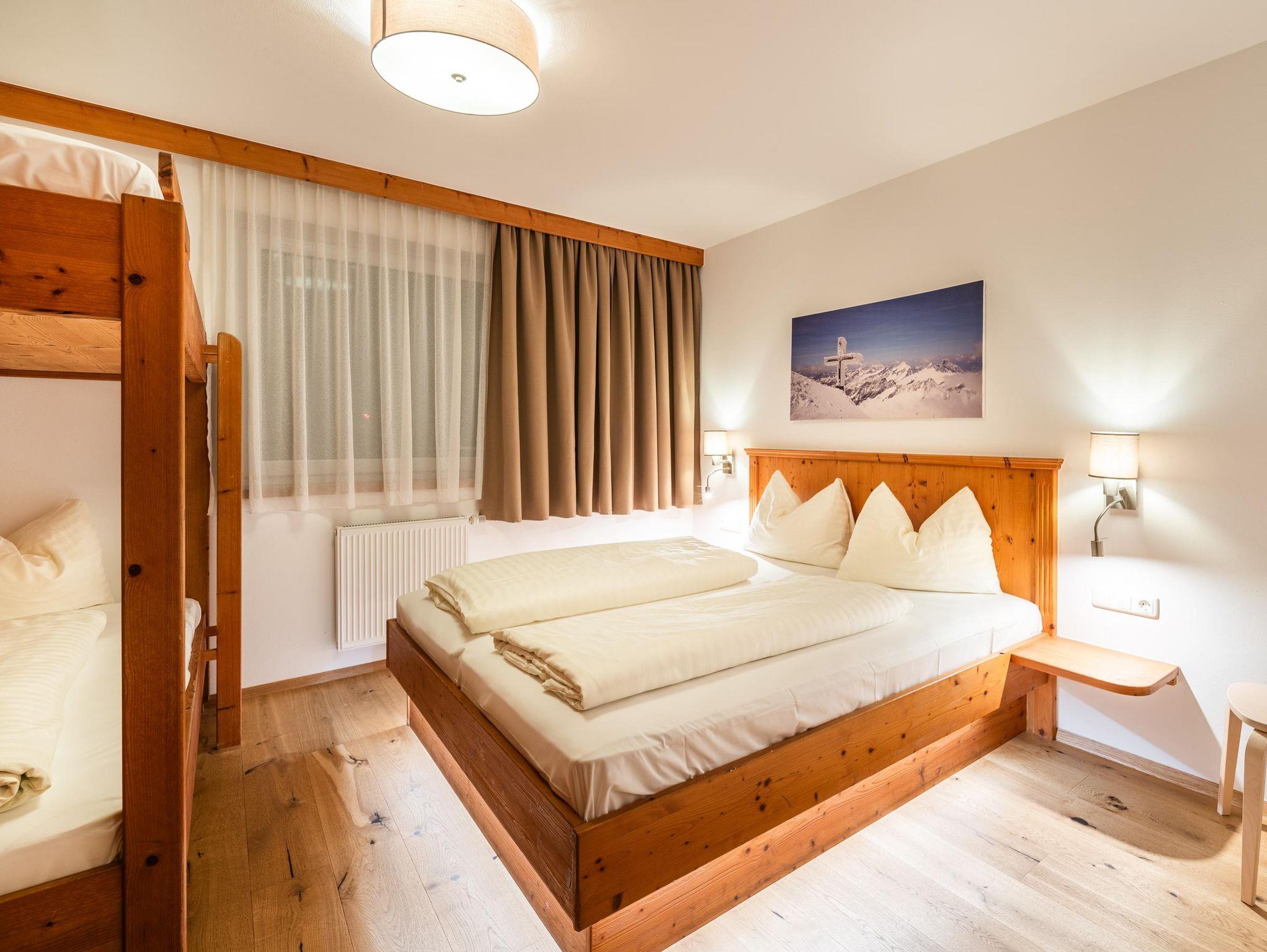 Ausstattung der Wohnung Typ Keeskogel: eine Wohnküche, drei Schlafzimmer, ein Badezimmer mit Dusche/WC und ein Badzimmer mit Badewanne, separates WC, TV, W-Lan, Balkon; Wohnungsgröße: 98 m2