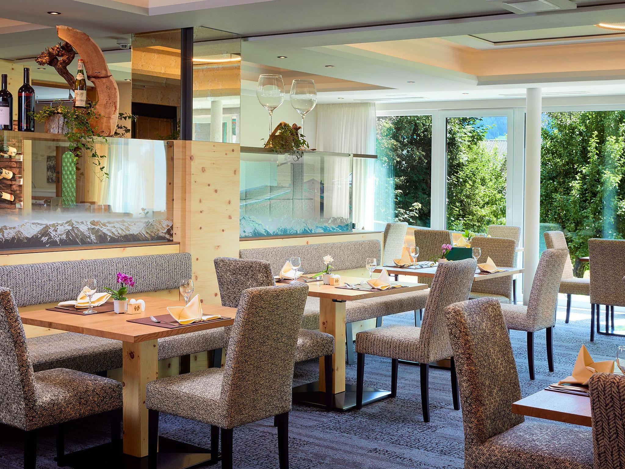Nach einem herrlichen Urlaubstag in der Natur entspannen Sie sich in unserer 200 m2 großen Wellness-Oase oder im Freischwimm-Biotop. Restaurant mit Buffetlandschaft, Bar und neu gestalteter Zirben-Speisesaal. Großzügige Studios und Suiten (mit Zirbenholz) sorgen für viel Komfort.