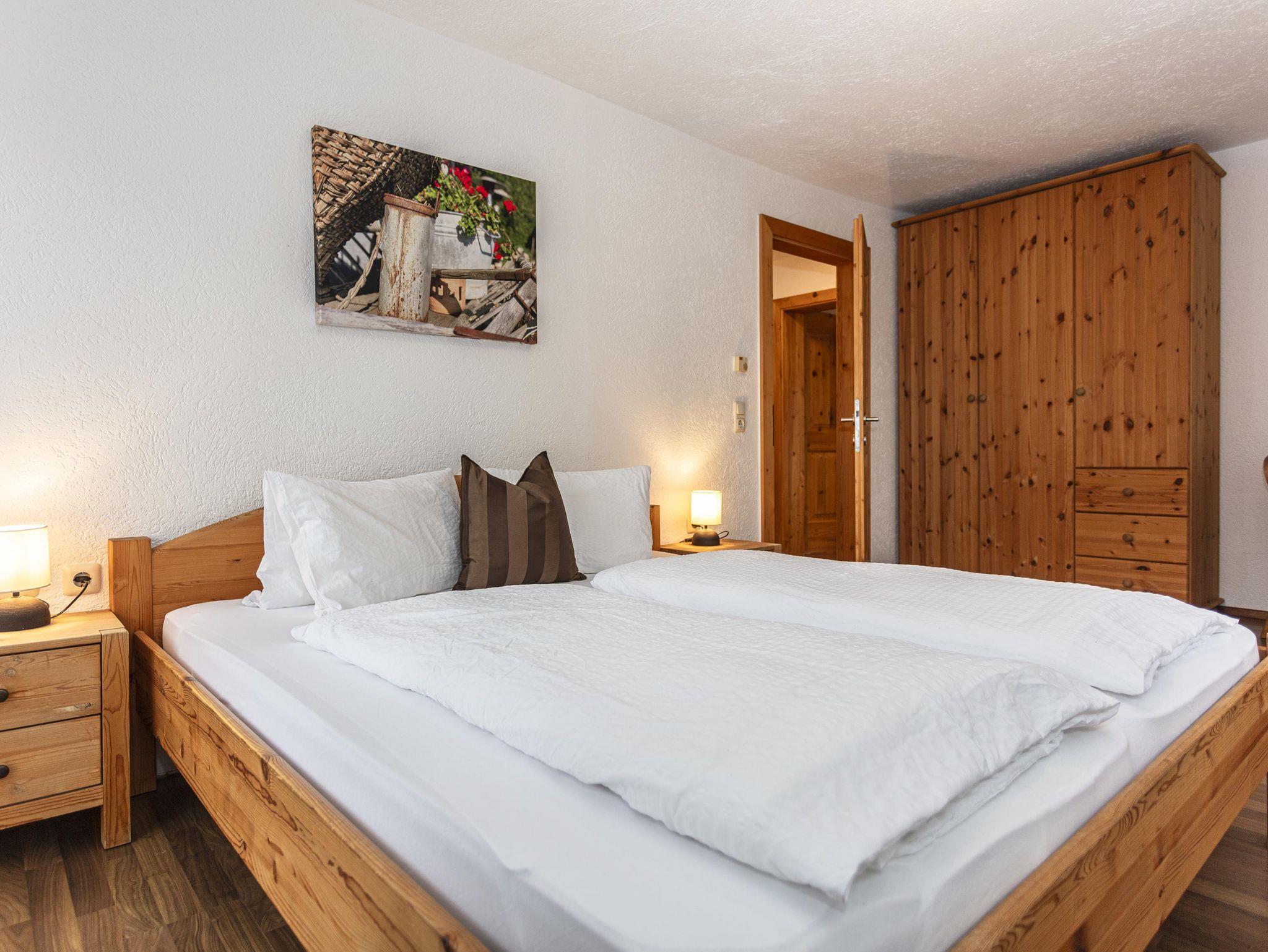 Schlafzimmer mit Doppelbett, Schlafkoje mit Etagenbett, Wohnraum mit Küche (ausziehbare Doppelcouch), modernes Bad mit Dusche und WC, großzügige Sonnenterrasse mit traumhaftem Bergblick