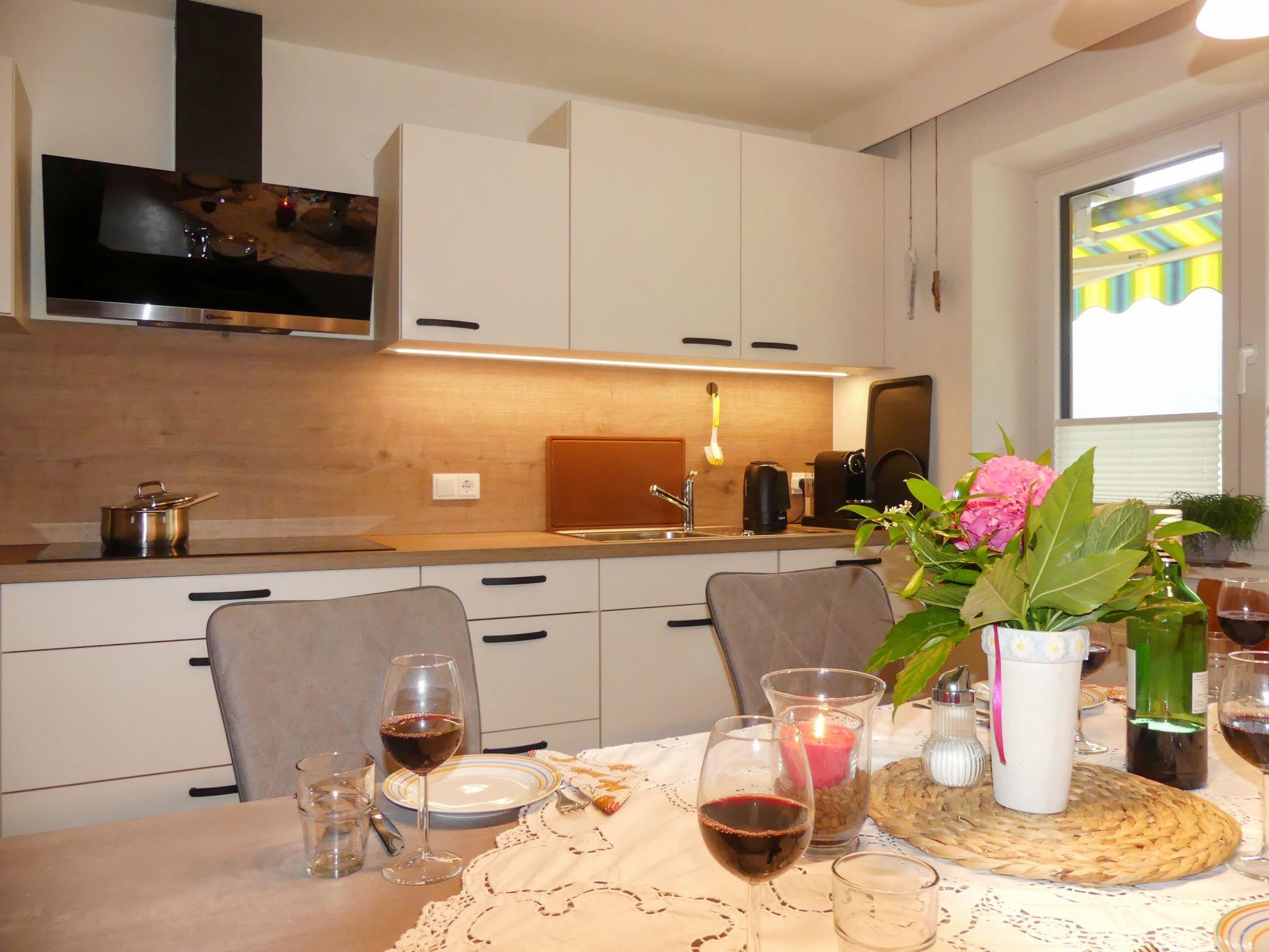7-room house 200 m2 on 2 levels. Comfortable and cosy furnishings: entrance hall. Living room with panoramic window with 1 double sofabed and cable TV. Exit to the terrace. 1 double bedroom with hand-basin and cable TV. Kitchen (oven, dishwasher, 4 induction hot plates, toaster, kettle, microwave, freezer, electric coffee machine, Capsules for coffee machine (Nespresso) extra) with dining table. Shower/bidet/WC, sep. WC. Upper floor: 1 double bedroom with hand-basin and cable TV. Exit to the balcony. 1 room with 1 bed, 1 double bed and cable TV. Exit to the balcony. 1 room with 2 beds. Kitchen (oven, 4 ceramic glass hob hotplates, toaster, kettle, microwave, electric coffee machine). Exit to the balcony. Shower, shower/WC, sep. WC, double hand-basin. Wooden floors, natural stone floors. Terrace. Terrace furniture. Maximum 1 pet/ dog allowed. If 6 persons booked, one bedroom will be closed. When there are less than the maximum number of guests staying at the property, not all of the housing units will be available for use. 50641-001237-2020