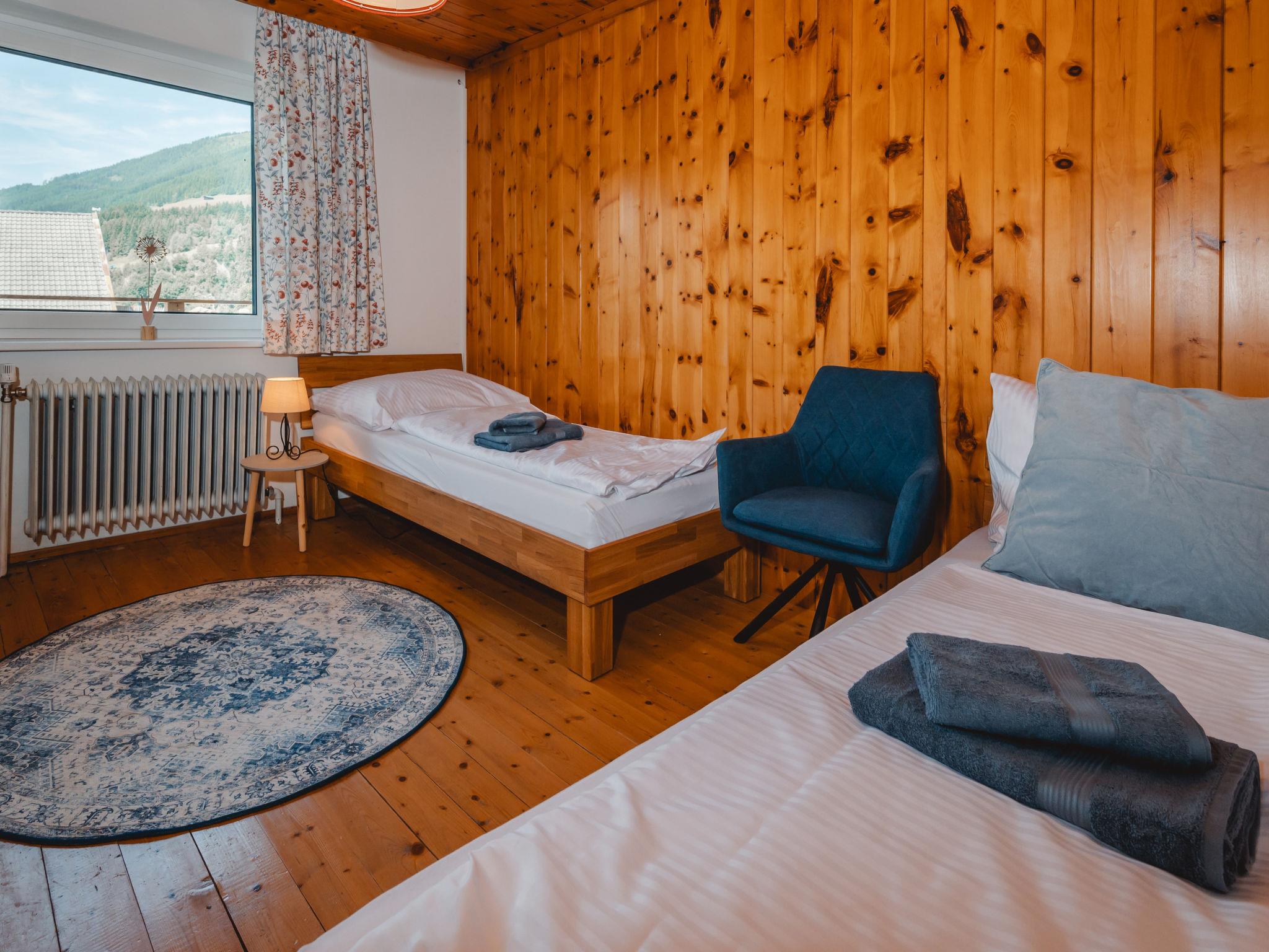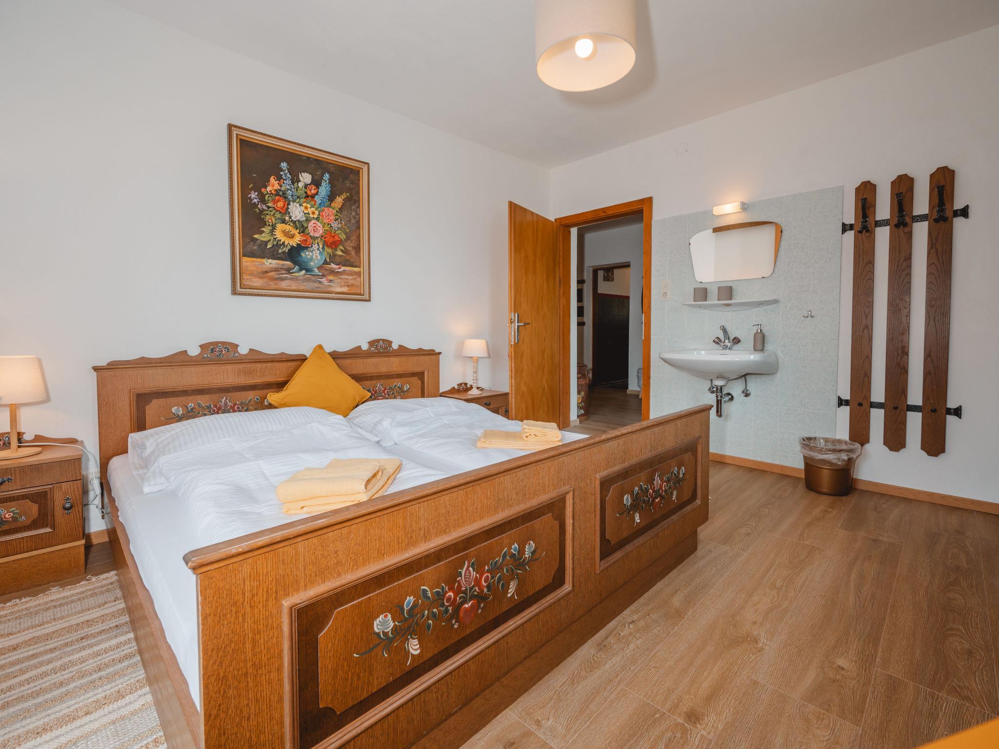 "Panoramaperle", 6-room apartment 100 m2 on 1st floor. Modern and cosy furnishings: living/dining room with satellite TV. 2 double bedrooms. 2 rooms, each room with 2 beds. 1 room with 1 bed. Large kitchen (oven, dishwasher, 4 ceramic glass hob hotplates, kettle, freezer, electric coffee machine) with dining table. Shower, sep. WC. Heating. Balcony. Balcony furniture. Very beautiful panoramic view of the mountains. Facilities: Internet (WiFi, free). Please note: non-smokers only. Maximum 1 pet/ dog allowed. 50614-0006467-2025