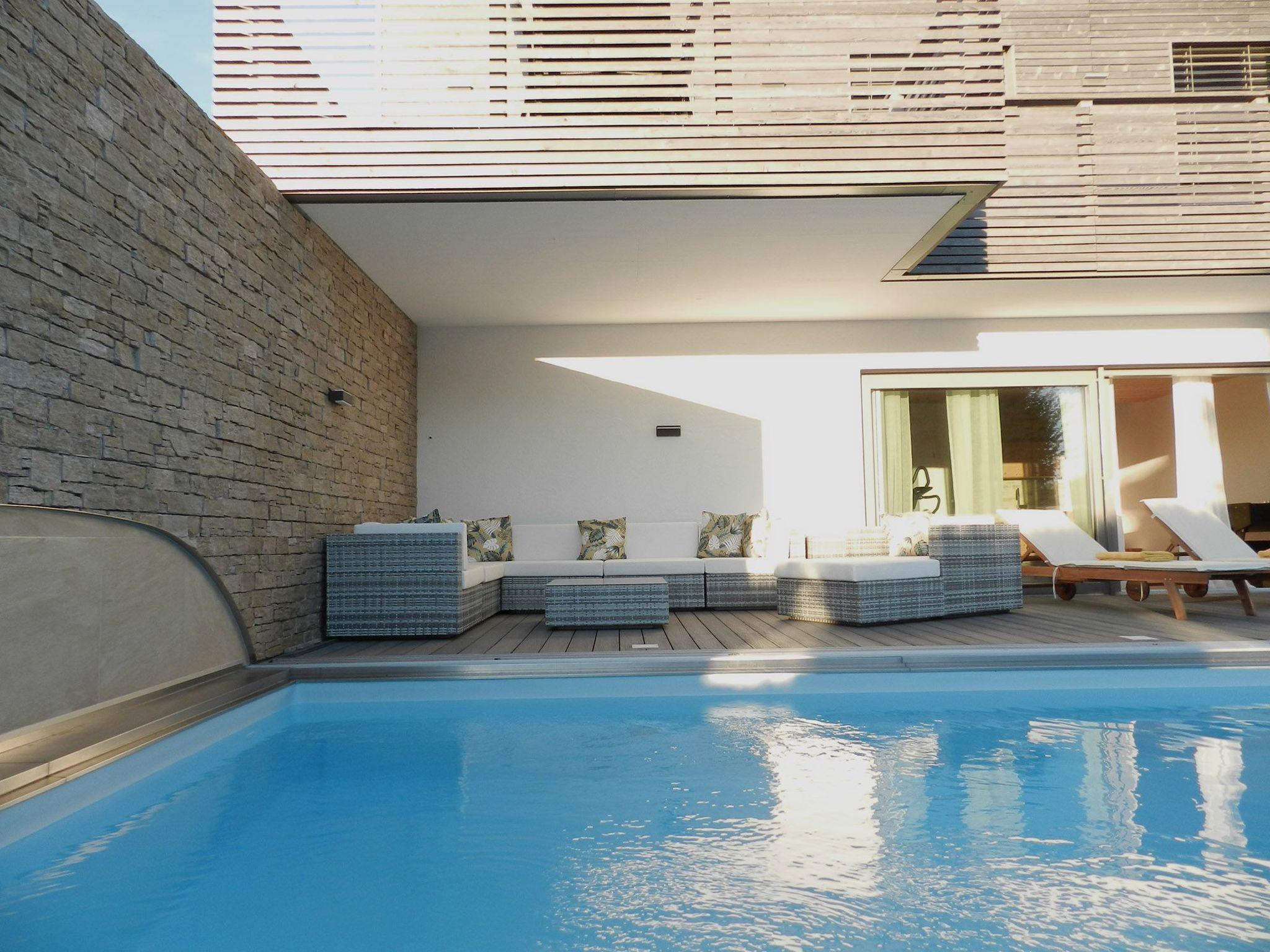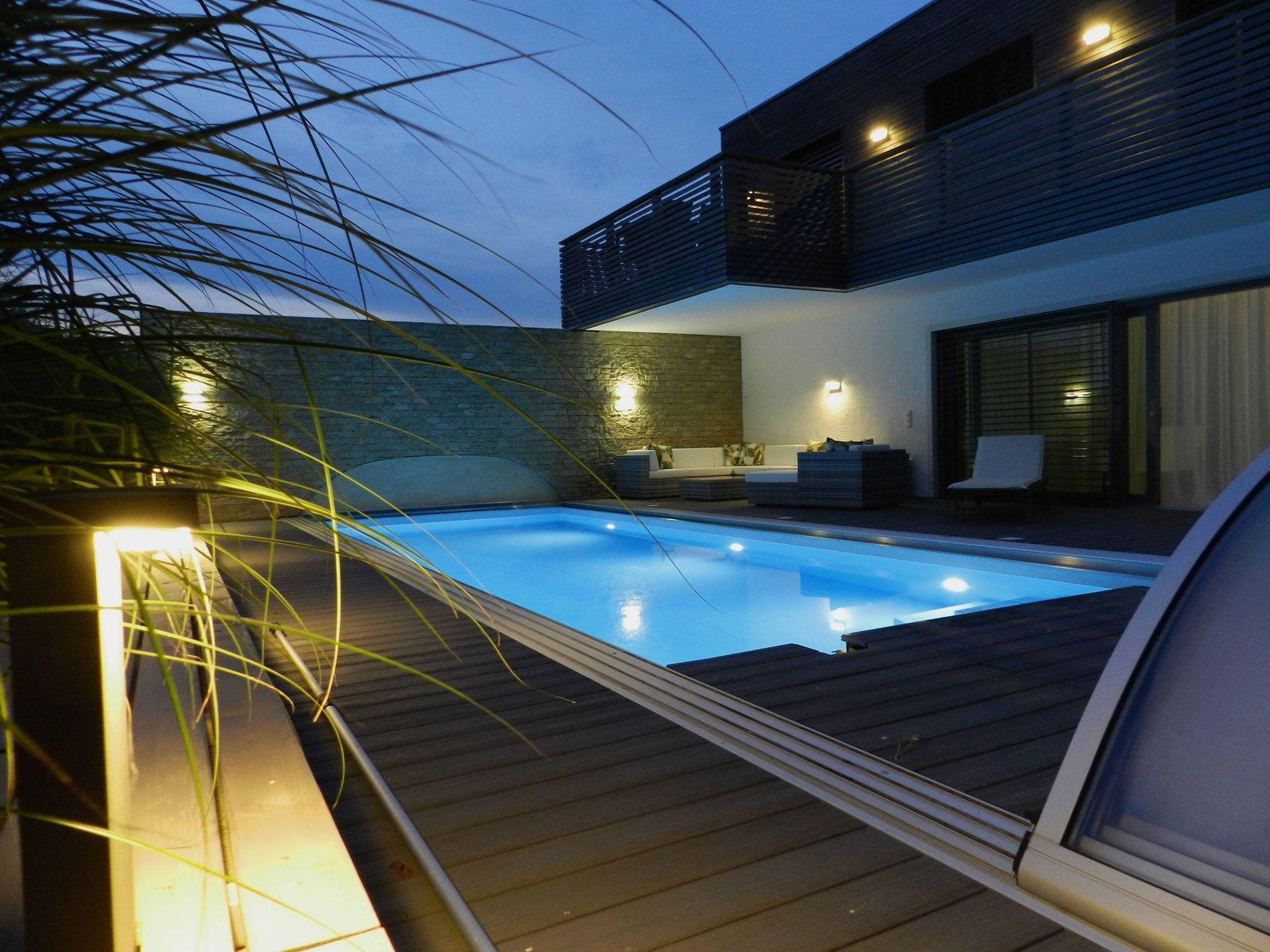 Directly from the wellness area you step out onto the pool terrace, where a cosy lounge set and sun loungers invite you to relax and the 9 m long saltwater pool invites you to take a dip. The pool can also be used with the cover, like an indoor pool, so that nothing stands in the way of bathing fun even on rainy days.For the children there is, apart from the pool, lots of fun in the large garden. Two swings, a climbing frame, a children's playhouse, bobby cars and a children's play kitchen are available for the little ones, while for older guests there is a football table and an electronic dartboard in the table tennis room next to the table tennis table.