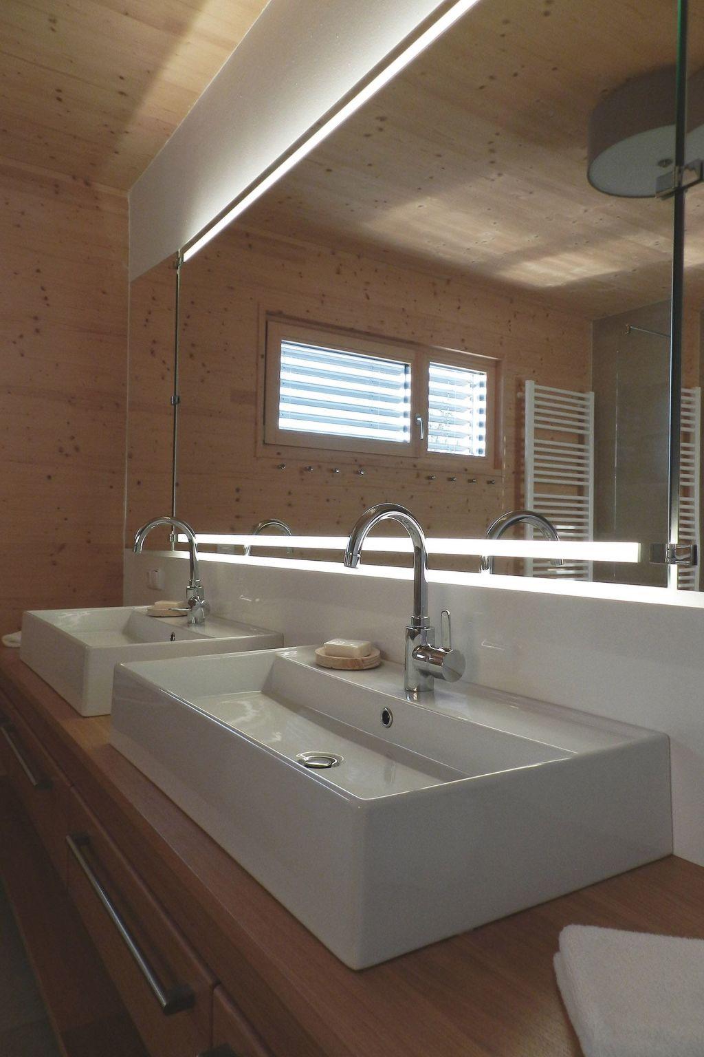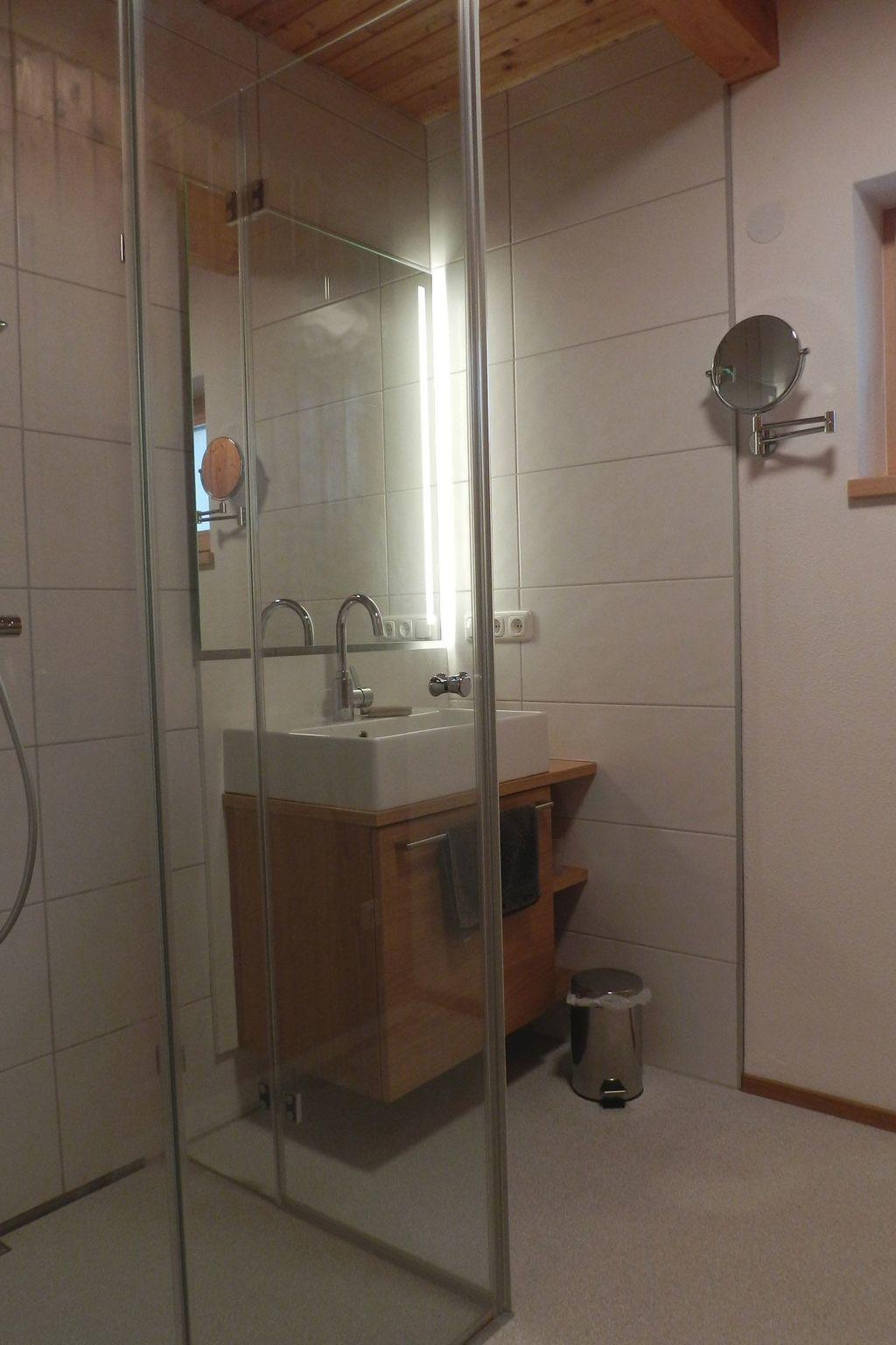 On the 135 m² ground floor there is a spacious living room with dining area and flatscreen TV, a modern, fully equipped kitchen, 3 bedrooms with double beds, one bedroom with two single beds, two bathrooms with shower and 2 toilets. All living areas are equipped with underfloor heating. For cosy winter days, there is a tiled stove in the living room and the south-facing terrace with a wonderful view of the mountains is accessible from the living area. A gas barbecue is available for barbecue professionals. A table and comfortable armchairs invite you to enjoy a cosy get-together. In the basement (95 m²) is the wellness area with a sauna and shower, a quiet zone with a small kitchenette, a table tennis room, a laundry room with washing machine and tumble dryer and a drinks fridge.