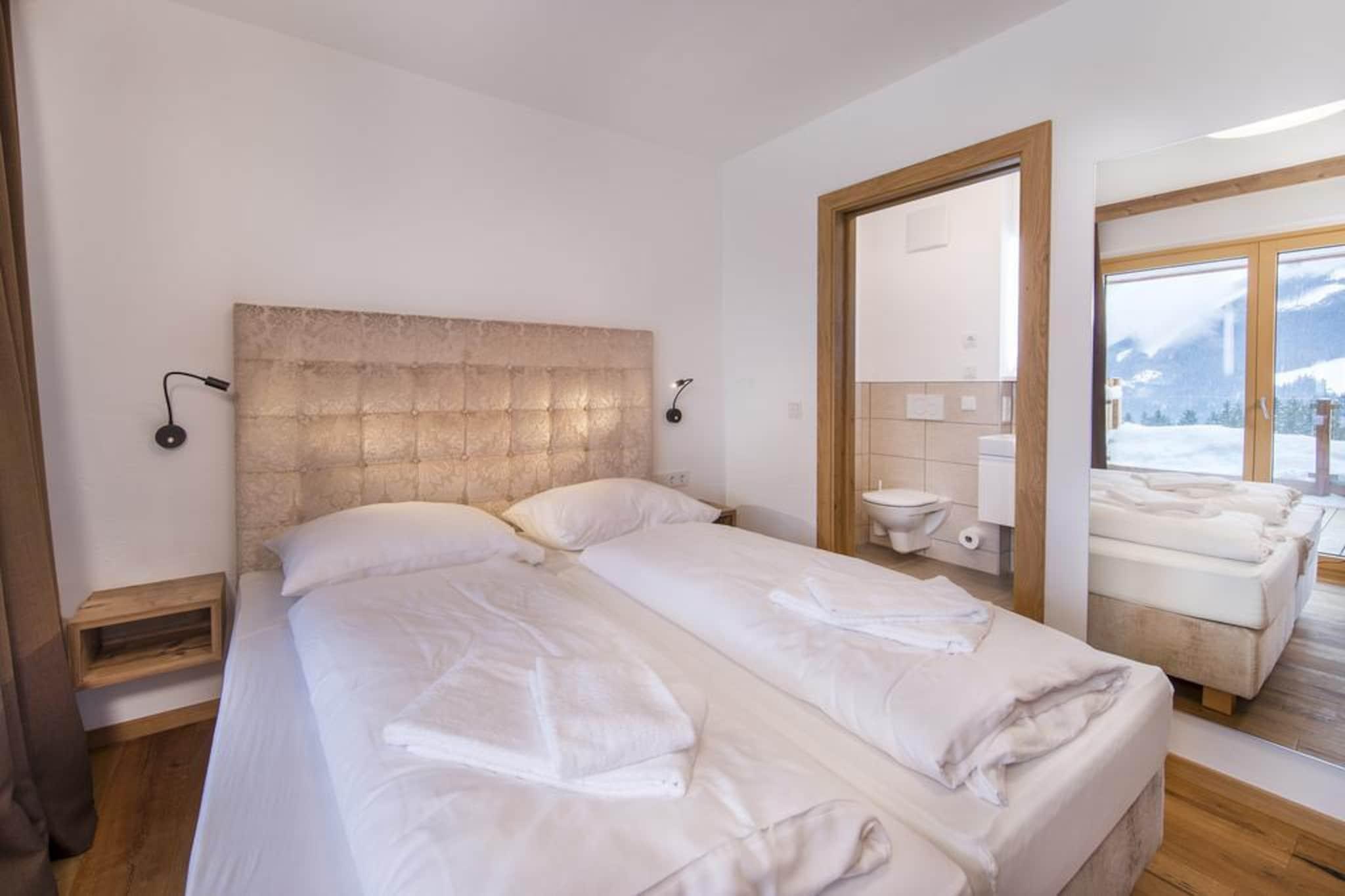 På et meget specielt sted, sydvest for den velkendte Neukirchen am Großvenediger og omgivet af den friske bjergluft, grønne enge og smukt snedækkede hvide bakker, er denne meget luksuriøse hytte blevet bygget på Roßbergs solrige skråning. Den storslåede hytte er designet med karakter. Brugen af masser af træ, specifikke detaljer og en perfekt finish i kombination med brug af materialer af høj kvalitet sikrer et særligt komfortabelt og luksuriøst hus. Du vil straks føle dig hjemme. Din hytte, som du naturligvis bor alene, har tre etager. En af etagerne er stueetagen, som giver en enestående udsigt med sine enorme vinduespartier. Udover opholds- og spiseplads med hyggelig brændeovn er der et moderne køkken i åbent plan udstyret med tidssvarende hårde hvidevarer. Soveværelserne, som er fordelt på etagerne, er meget hyggelige og indrettet til høj standard. Derudover har du din egen private sauna. Du kan parkere din bil (to stuk) på de delvist overdækkede parkeringspladser. Skiliften med øveeng ligger i gåafstand fra hytten og er perfekt til familier med små børn eller for begyndere. Avancerede skiløbere kan tages til liften i det storslåede Wildkogel Arena-skiområde med den gratis skibus. Med beliggenheden lige ved pisterne, kan du stå på ski tilbage til nær din hytte, hvis der er sne nok. Kunne du tænke dig at opleve noget anderledes for en gangs skyld? Skiområderne ved Zillertal Arena eller Kitzbühel/Kirchberg ligger kun få minutter væk i bil.