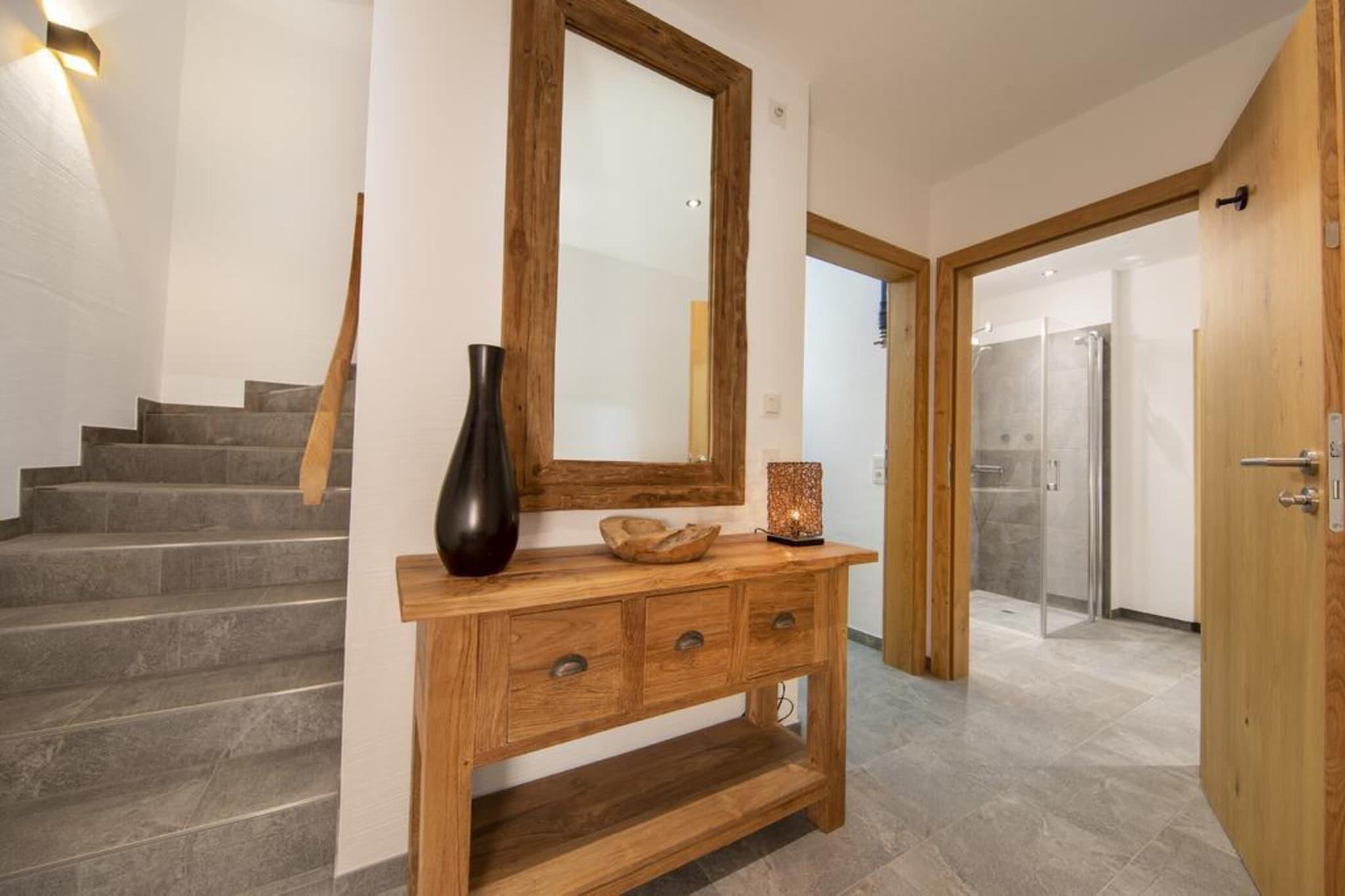 På en meget speciel beliggenhed, sydvest for den berømte Neukirchen am Großvenediger, omgivet af frisk bjergluft, grønne enge og smukke snedækkede hvide skråninger, er dette smukke luksuriøse chalet bygget på Rossbergs solrige skråning. Den smukke hytte er bygget med karakter. Den liberale brug af træ, særprægede detaljer, en perfekt finish kombineret med brugen af materialer af høj kvalitet gør huset yderst komfortabelt og luksuriøst. Du føler dig hjemme helt fra det første øjeblik. Din hytte, som du selv optager alene, har selvfølgelig mindst 2 etager, men nogle gange også 3. Et af disse gulve er opholdsområdet, som har en fantastisk udsigt gennem den enorme vinduer. Udover et opholds- og spiseplads med hyggelig brændeovn er der også et moderne åbent køkken udstyret med alt moderne udstyr. Soveværelserne, der er fordelt over gulvene, er meget atmosfæriske og har møbler af høj kvalitet. Der er også en privat sauna. Du kan parkere din bil på de delvist overdækkede parkeringspladser, som ledig. Der er flere hytter i umiddelbar nærhed, der skaber en slags landsby. Der er en centralt beliggende ski udlejning og skiskole. Derudover er der en "Imbiss" med en lille menu til en snack eller en drink. Kan du lide frisk brød hver dag? Intet problem, du kan bestille disse i receptionen. Skibakken med træningsområde (fra 2019/2020 sæsonen) ligger inden for gåafstand af hytten, perfekt til familier med små børn eller begyndere. Avancerede skiløbere kan bringes til elevatoren af det smukke Wildkogel Arena skiområde med den gratis skibus. På grund af beliggenheden lige på skråningerne kan du stå tilbage til din hytte, når der er masser af sne. Vil du have noget andet? Skiområdet Zillertal Arena eller Kitzbühel / Kirchberg ligger kun få minutter væk i bil. Om sommeren tilbyder de omkringliggende bjerge og de mange seværdigheder at byde masser af muligheder for den aktive feriegæster eller for dem der søger ro. I