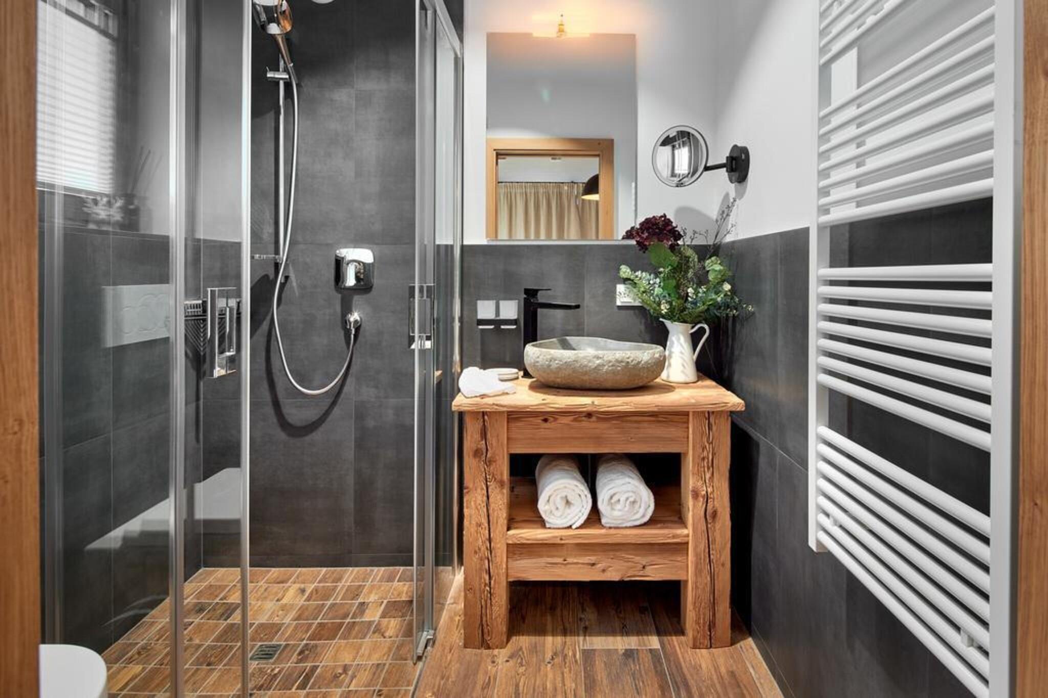 På en meget speciel beliggenhed, sydvest for den berømte Neukirchen am Großvenediger, omgivet af frisk bjergluft, grønne enge og smukke snedækkede hvide skråninger, er dette smukke luksuriøse chalet bygget på Rossbergs solrige skråning. Den smukke hytte er bygget med karakter. Den liberale brug af træ, særprægede detaljer, en perfekt finish kombineret med brugen af materialer af høj kvalitet gør huset yderst komfortabelt og luksuriøst. Du føler dig hjemme helt fra det første øjeblik. Din hytte, som du selv optager alene, har selvfølgelig mindst 2 etager, men nogle gange også 3. Et af disse gulve er opholdsområdet, som har en fantastisk udsigt gennem den enorme vinduer. Udover et opholds- og spiseplads med hyggelig brændeovn er der også et moderne åbent køkken udstyret med alt moderne udstyr. Soveværelserne, der er fordelt over gulvene, er meget atmosfæriske og har møbler af høj kvalitet. Der er også en privat sauna. Du kan parkere din bil på de delvist overdækkede parkeringspladser, som ledig. Der er flere hytter i umiddelbar nærhed, der skaber en slags landsby. Der er en centralt beliggende ski udlejning og skiskole. Derudover er der en "Imbiss" med en lille menu til en snack eller en drink. Kan du lide frisk brød hver dag? Intet problem, du kan bestille disse i receptionen. Skibakken med træningsområde (fra 2019/2020 sæsonen) ligger inden for gåafstand af hytten, perfekt til familier med små børn eller begyndere. Avancerede skiløbere kan bringes til elevatoren af det smukke Wildkogel Arena skiområde med den gratis skibus. På grund af beliggenheden lige på skråningerne kan du stå tilbage til din hytte, når der er masser af sne. Vil du have noget andet? Skiområdet Zillertal Arena eller Kitzbühel / Kirchberg ligger kun få minutter væk i bil. Om sommeren tilbyder de omkringliggende bjerge og de mange seværdigheder at byde masser af muligheder for den aktive feriegæster eller for dem der søger ro. I